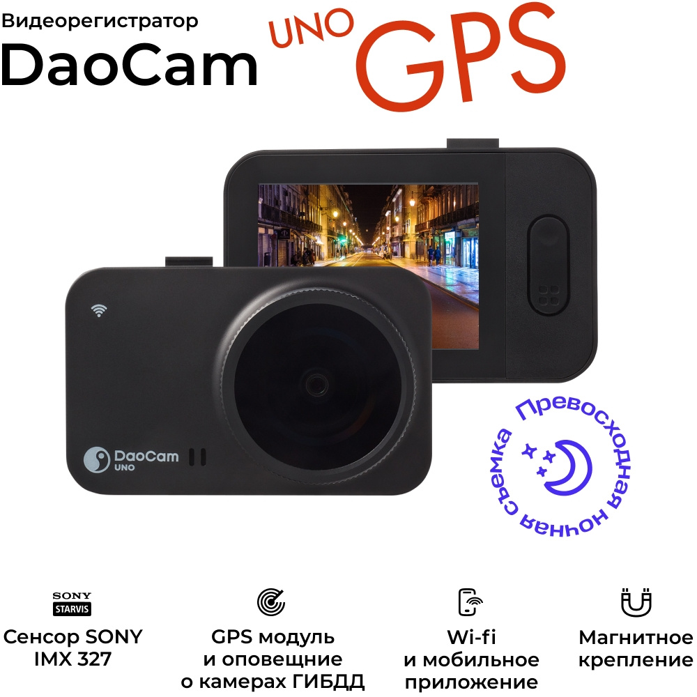 Видеорегистратор Daocam Uno GPS Wi-Fi черный 1080x1920 1080p 150гр. GPS Novatek 96672