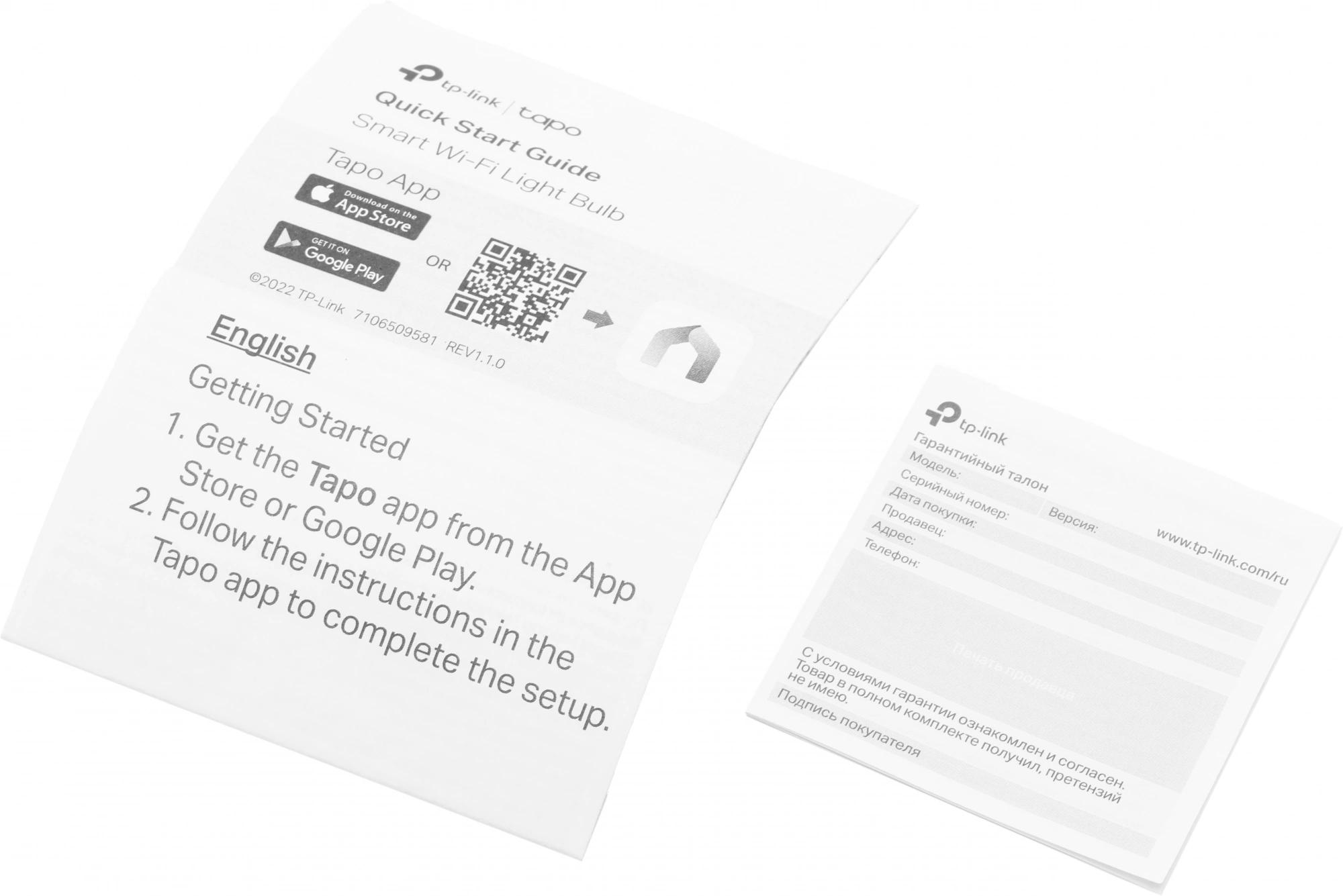 Лампа Tapo L520E (1 шт.) Руководство по быстрой настройке