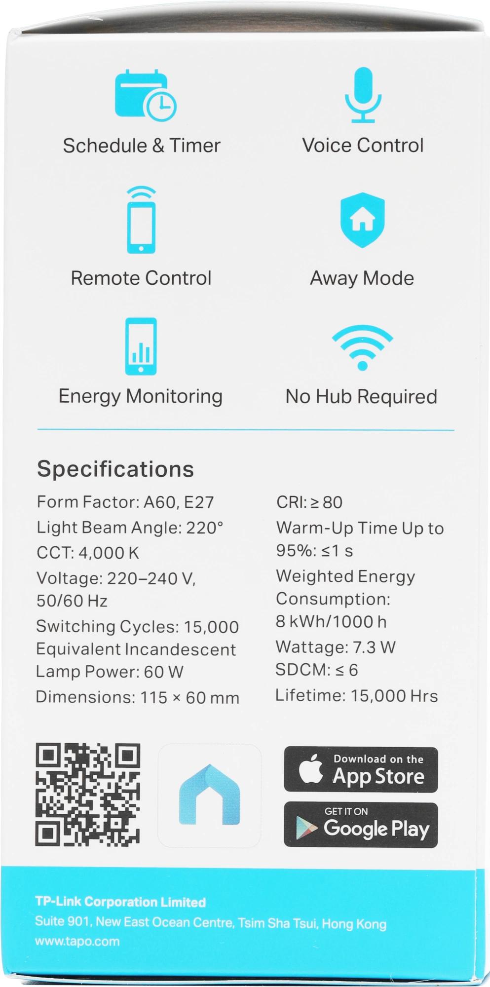 Голосовое управление — управляйте светом голосовыми командами при помощи Маруси, Яндекс Алисы или Google Ассистента. Удалённое управление светом из телефона через приложение Tapo. Режим «Не дома» — создание видимости присутствия в доме людей для отпугивания незваных гостей.