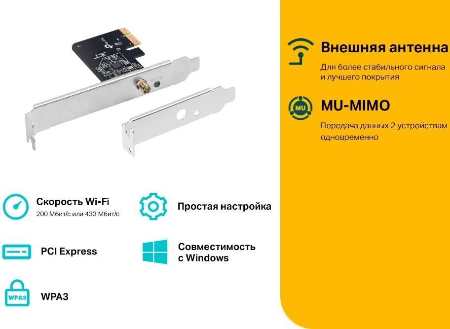 Сетевой адаптер Wi-Fi TP-Link Archer T2E AC600 PCI Express (ант.внеш.съем) 1ант.