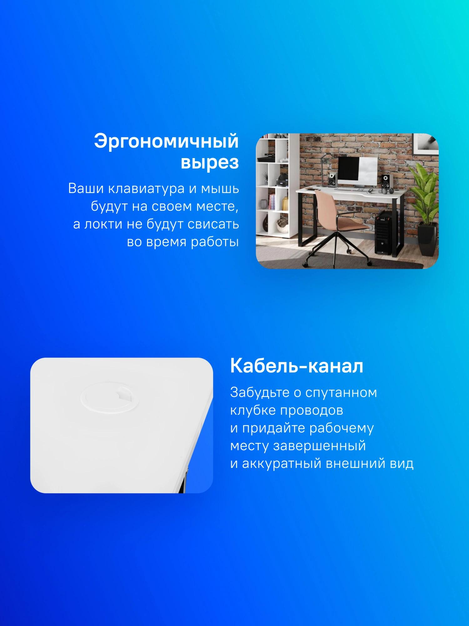 Столешница с анатомическим вырезом, что поможет снять нагрузку со спины и позволит с комфортом проводить время за компьютером при длительном игровом процессе. В столешнице предусмотрены два отверстия с заглушками для вывода проводов