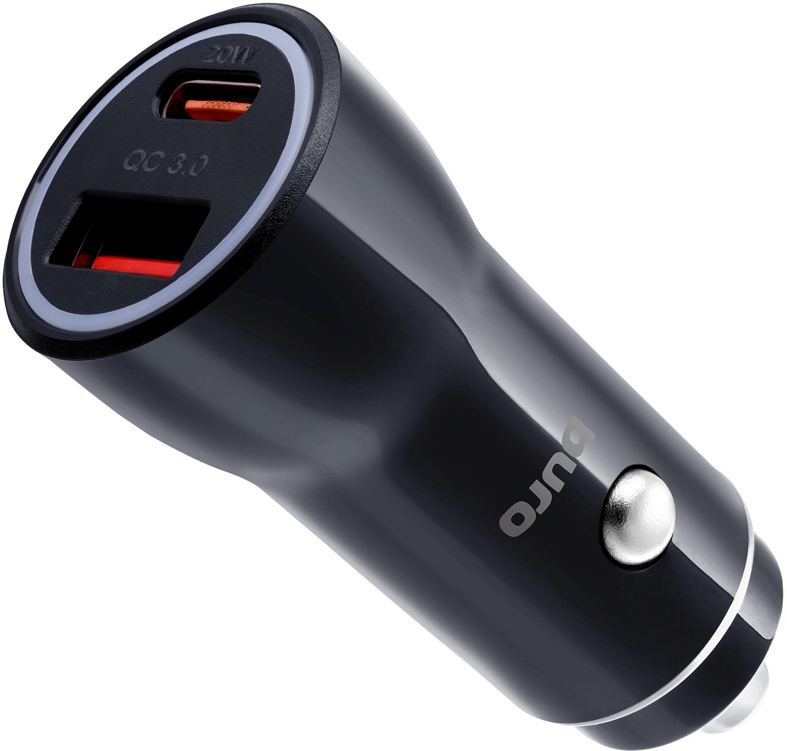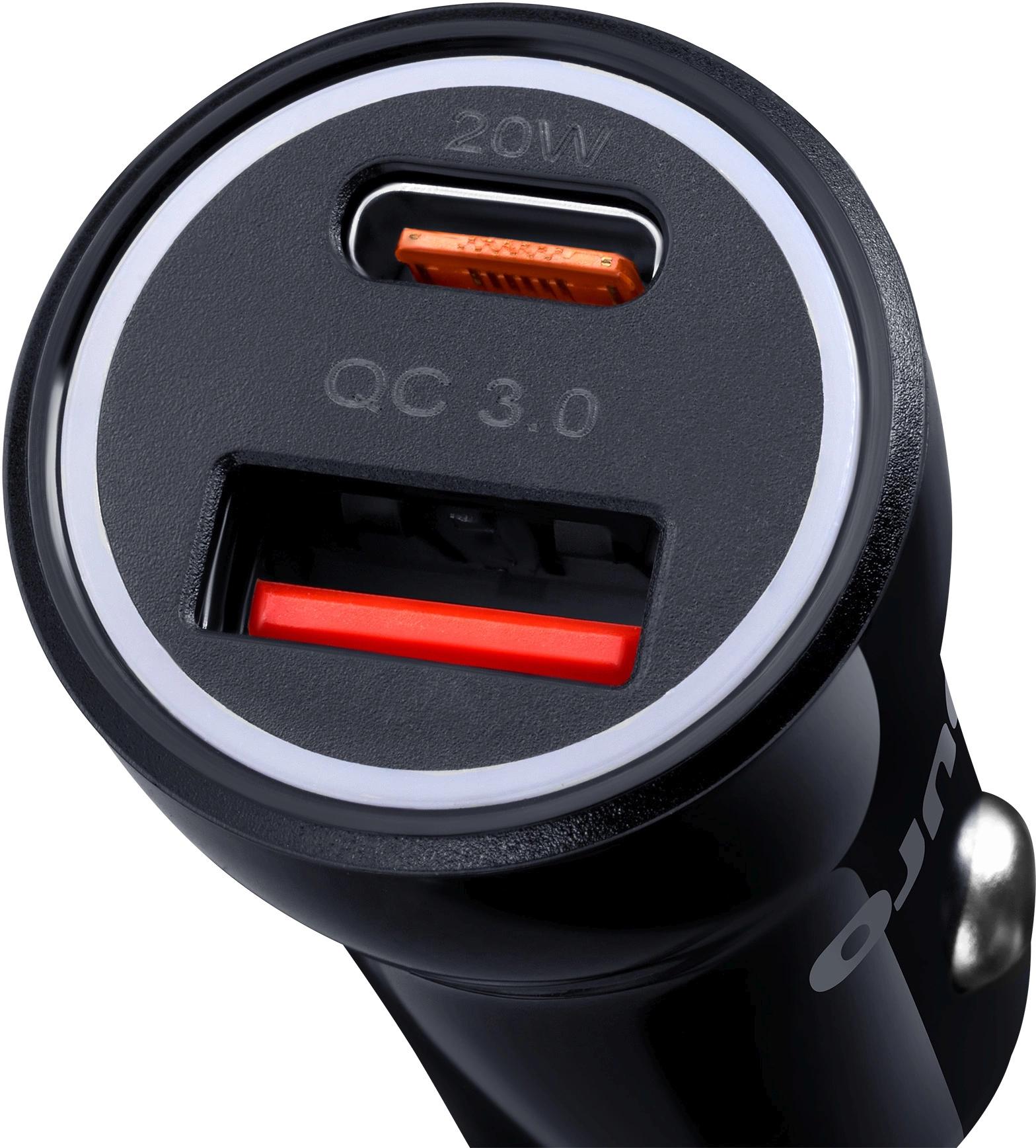 Автомобильное зарядное устройство от прикуривателя с 2 выходами и поддержкой быстрой зарядки - USB-A QC3.0 и USB-C PD18W с максимальной силой тока 3 А