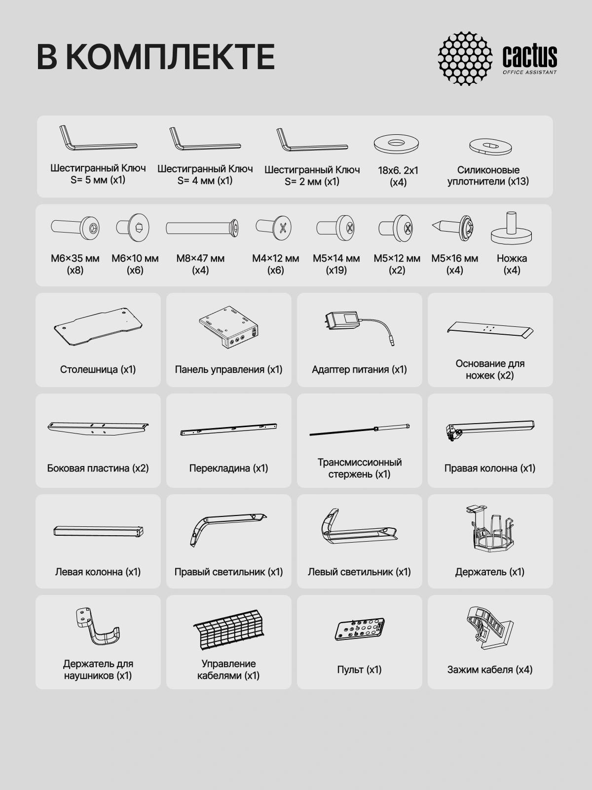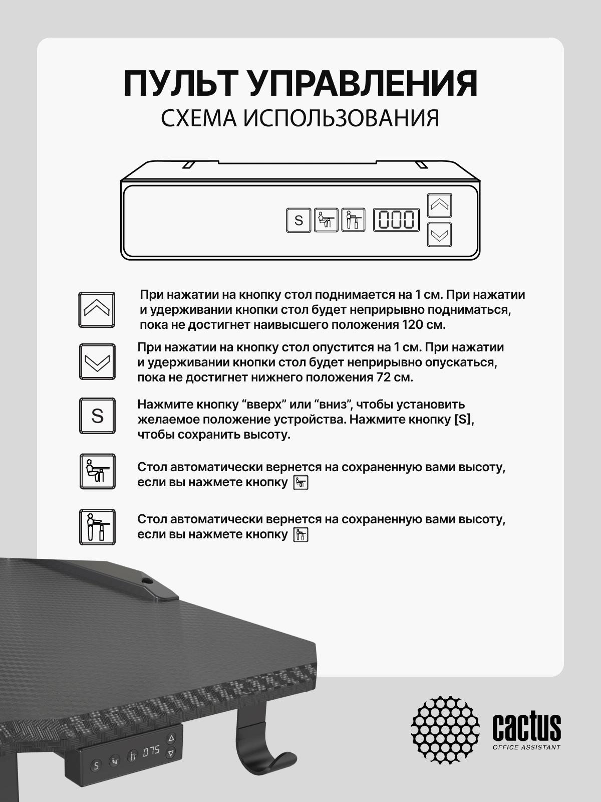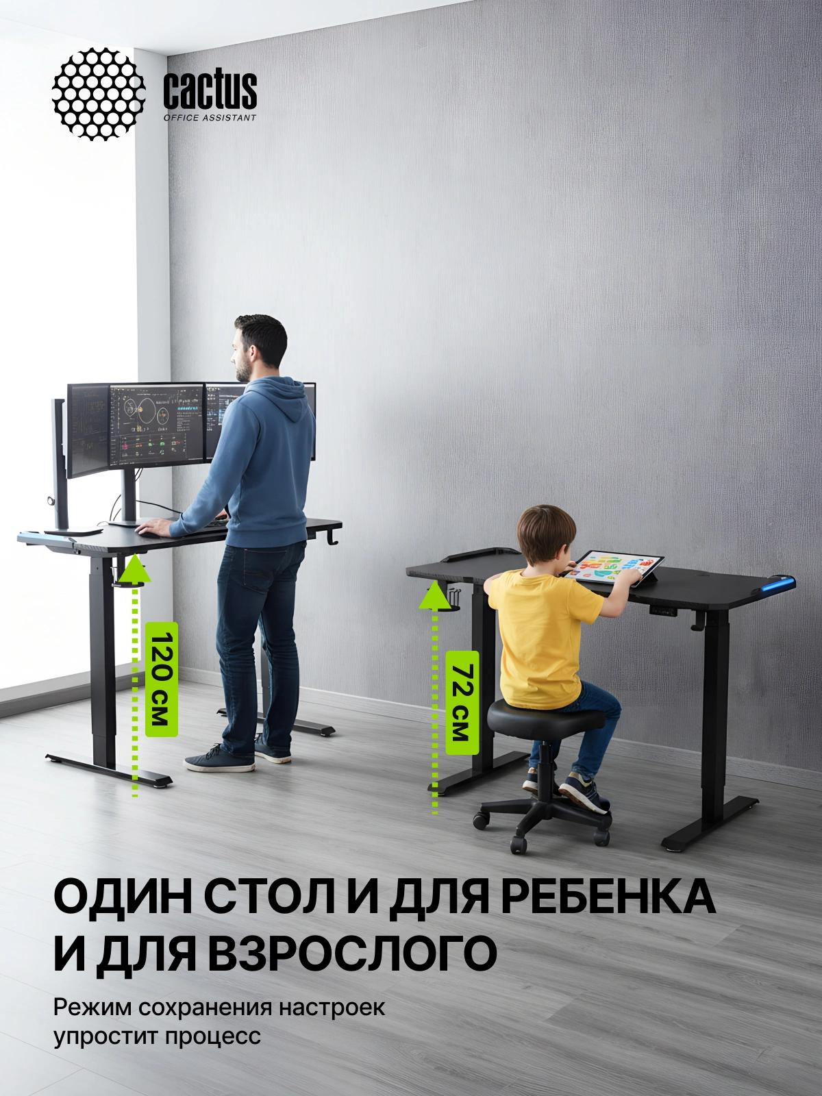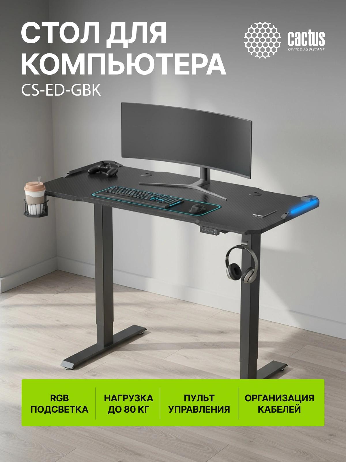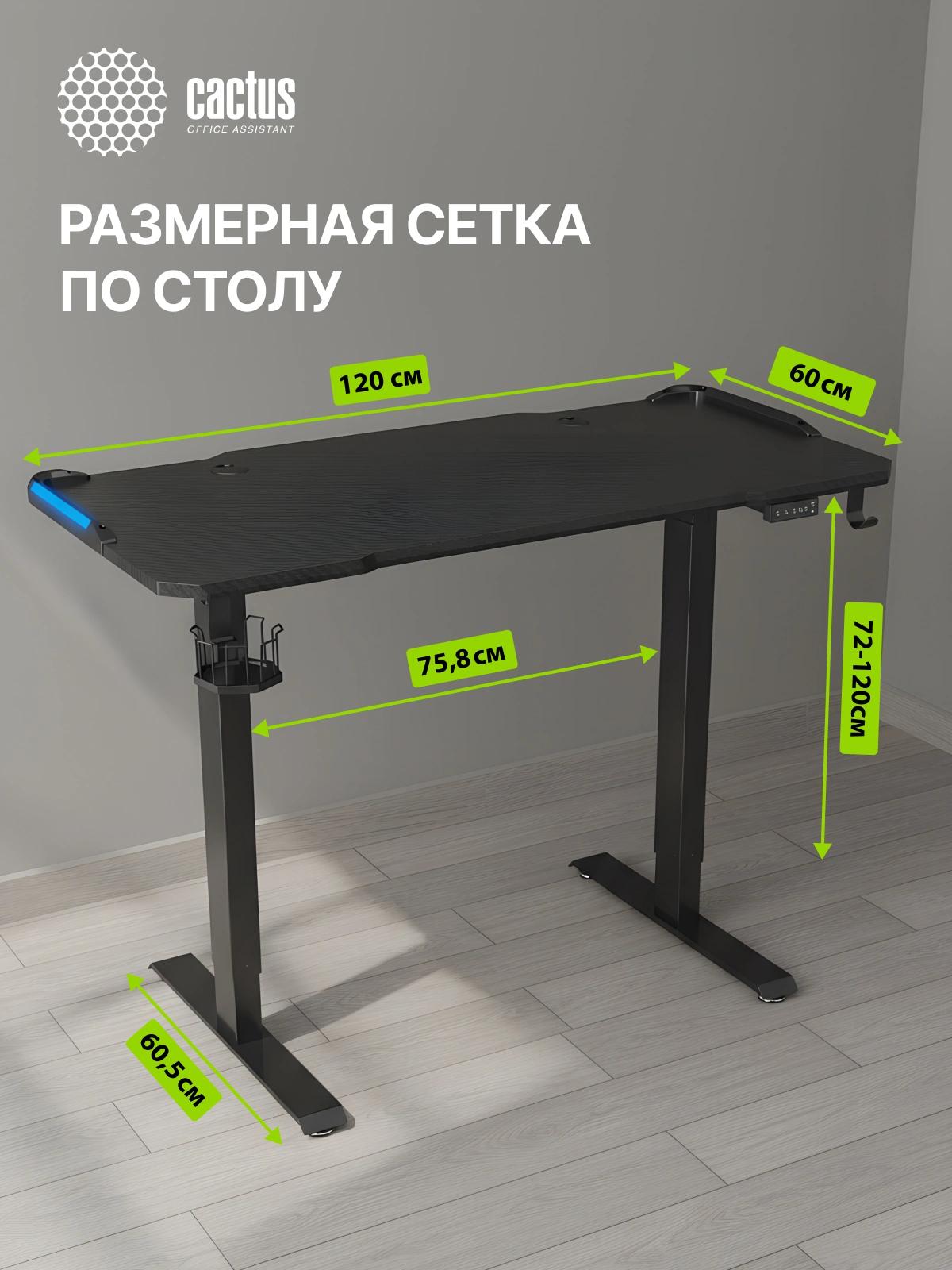 Стол для компьютера Cactus CS-ED-GBK электропривод столешница МДФ карбон каркас черный 120x60x72см