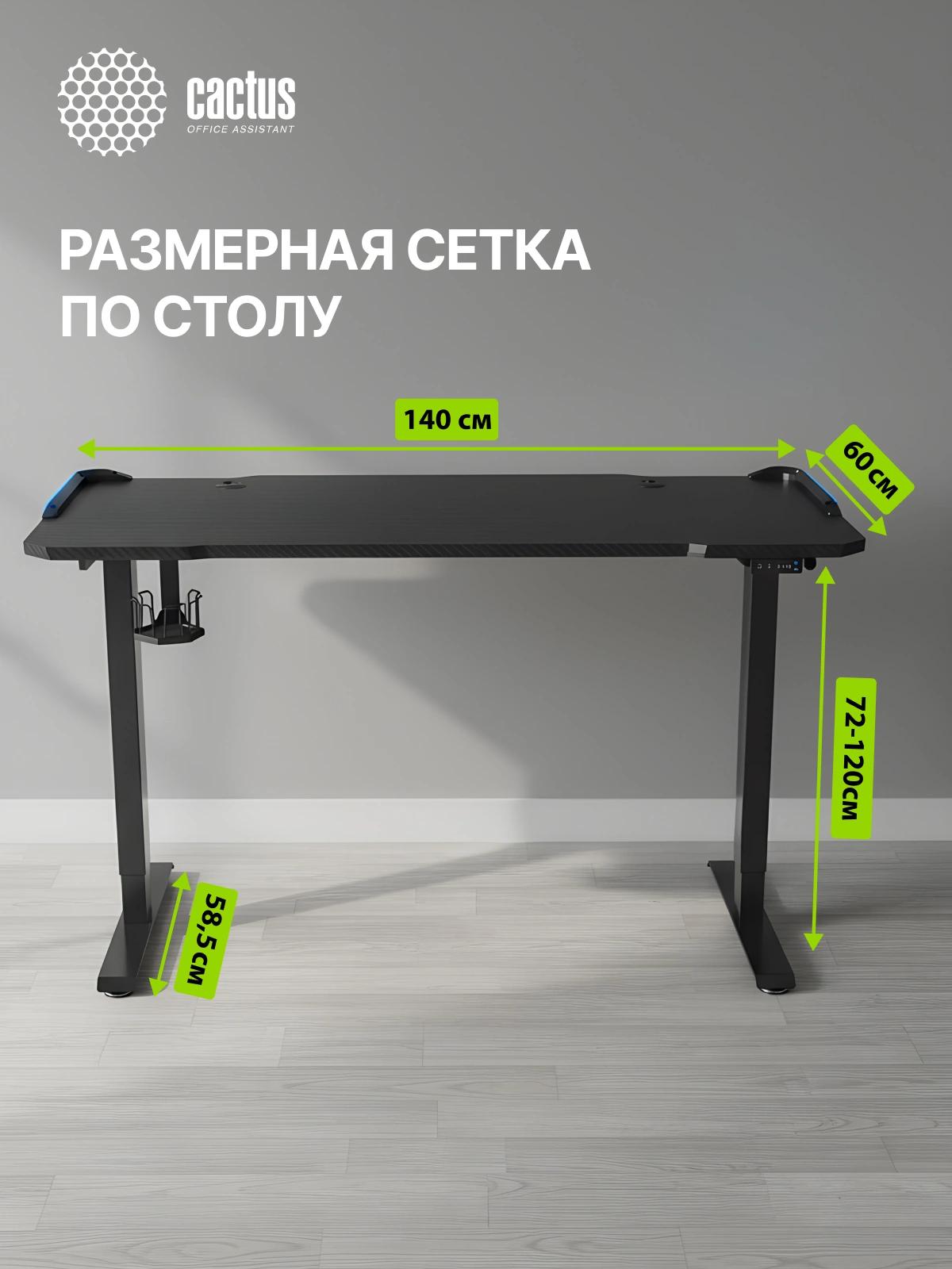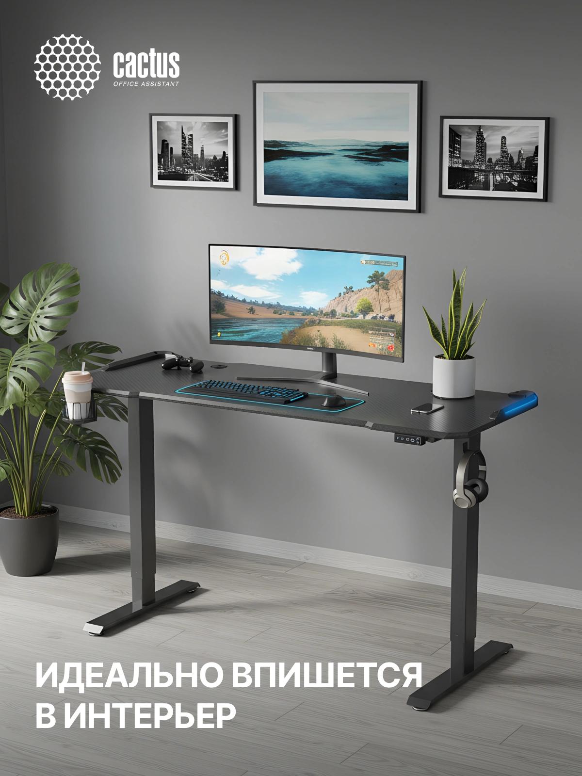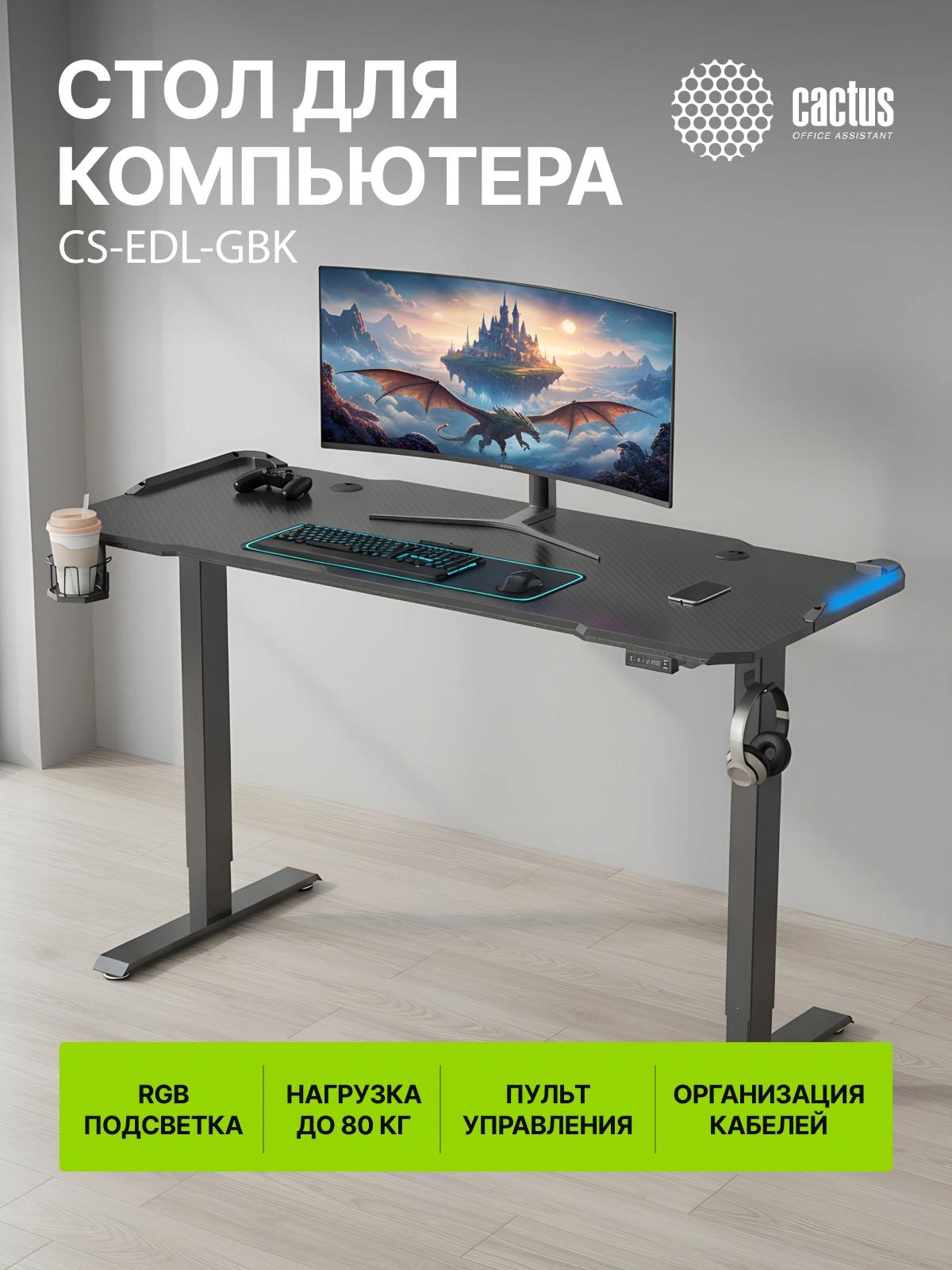 Стол для компьютера Cactus CS-EDL-GBK RGB электропривод столешница МДФ черный каркас черный 140x72x60см (CS-EDL-GBK)