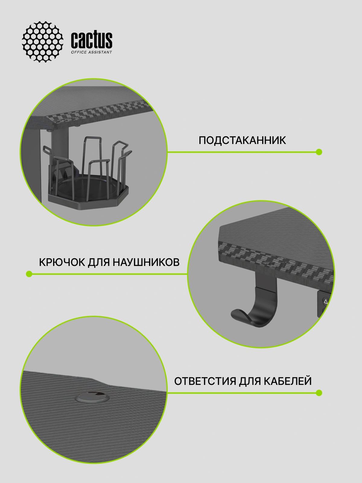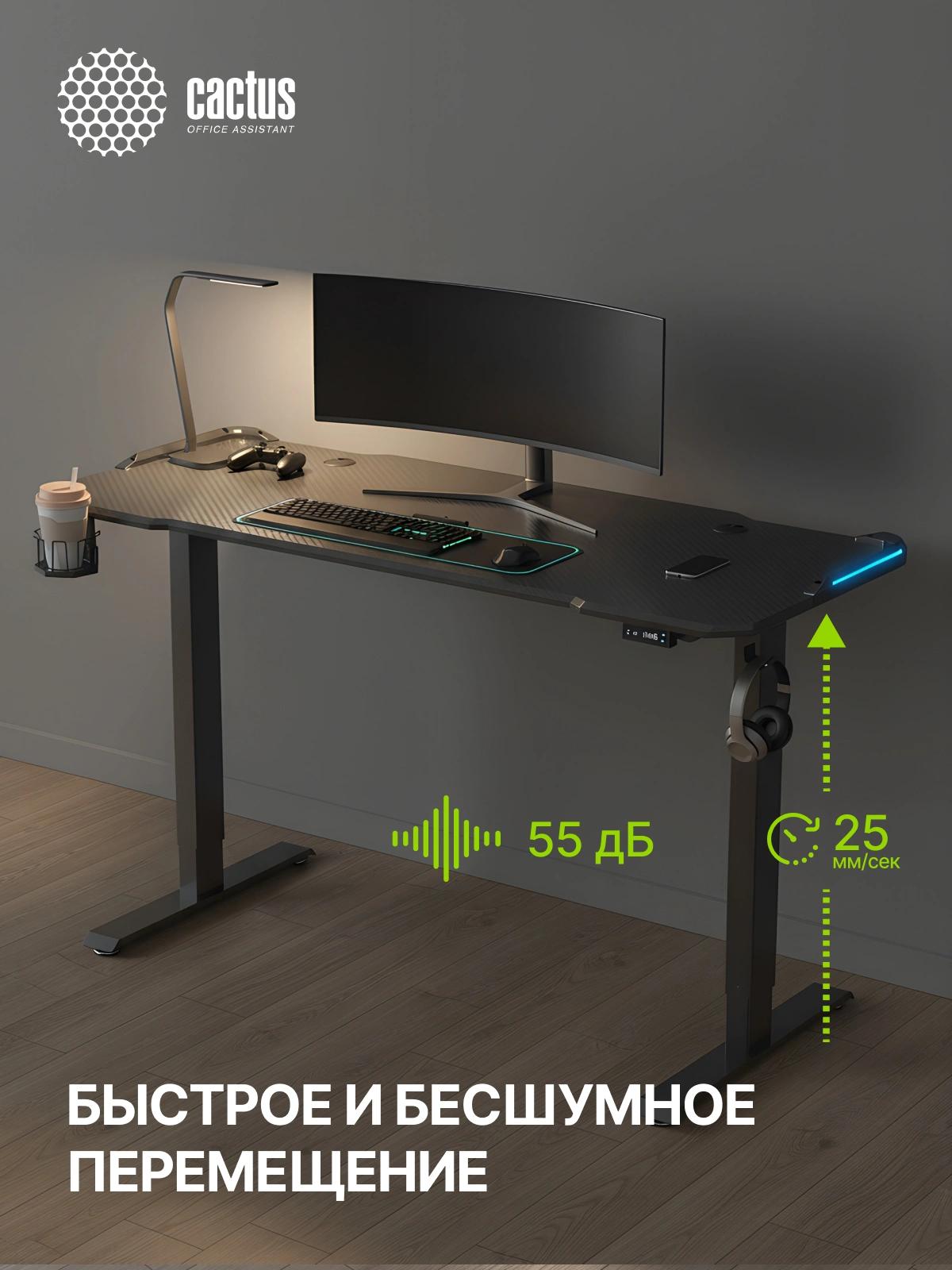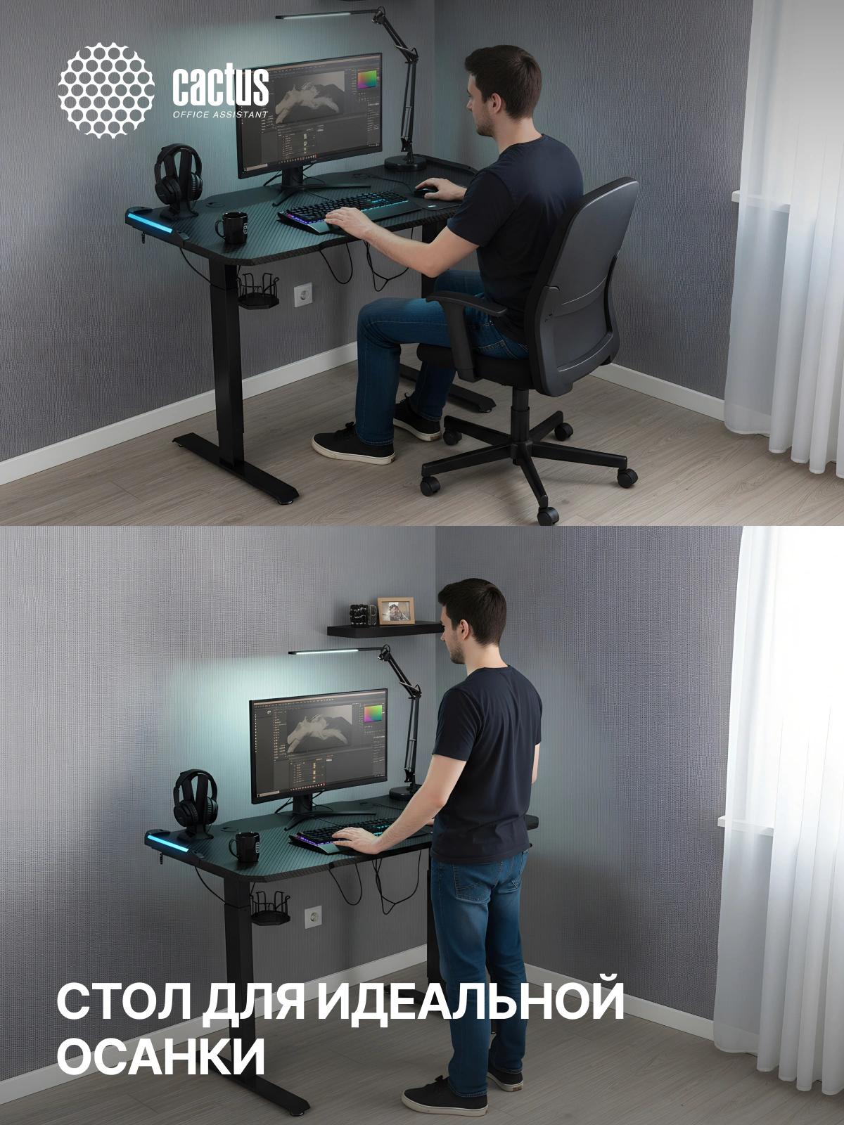 Стол для компьютера Cactus CS-EDL-GBK RGB электропривод столешница МДФ черный каркас черный 140x72x60см (CS-EDL-GBK)