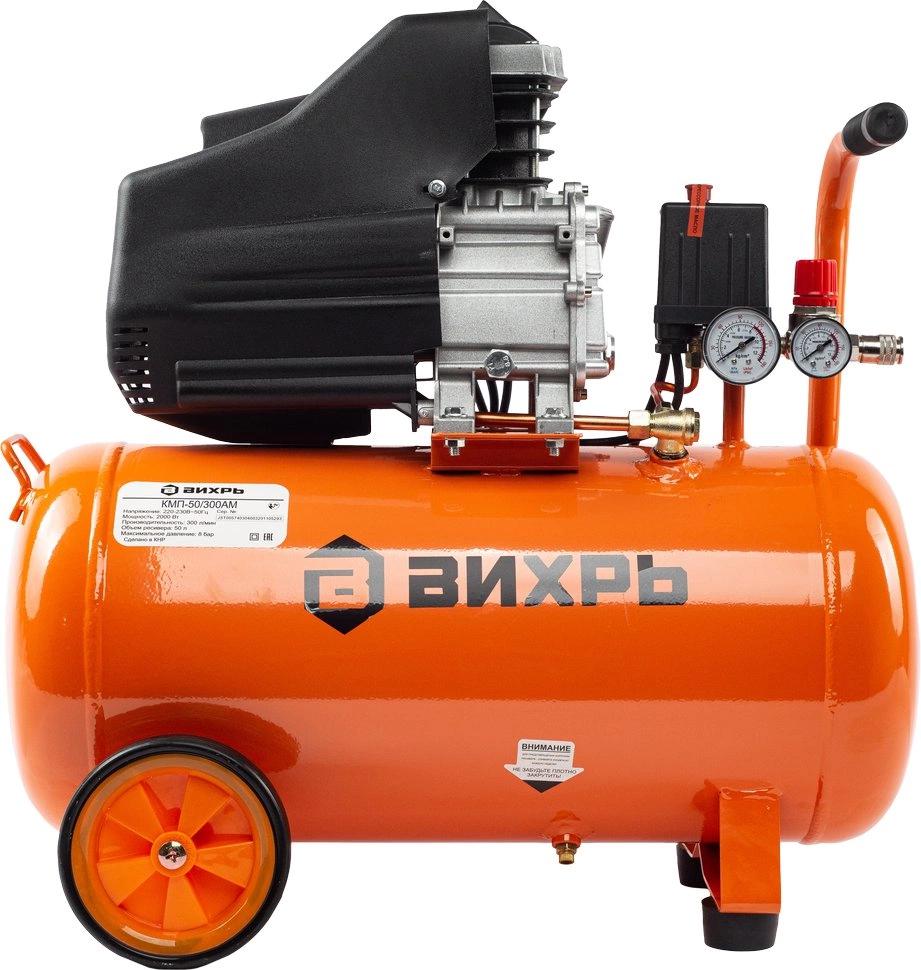 Компрессор Вихрь КМП-50/300АМ 74/3/12 используется для нагнетания сжатого воздуха в различное пневмооборудование в ходе строительно-ремонтных работ в квартире или на даче.