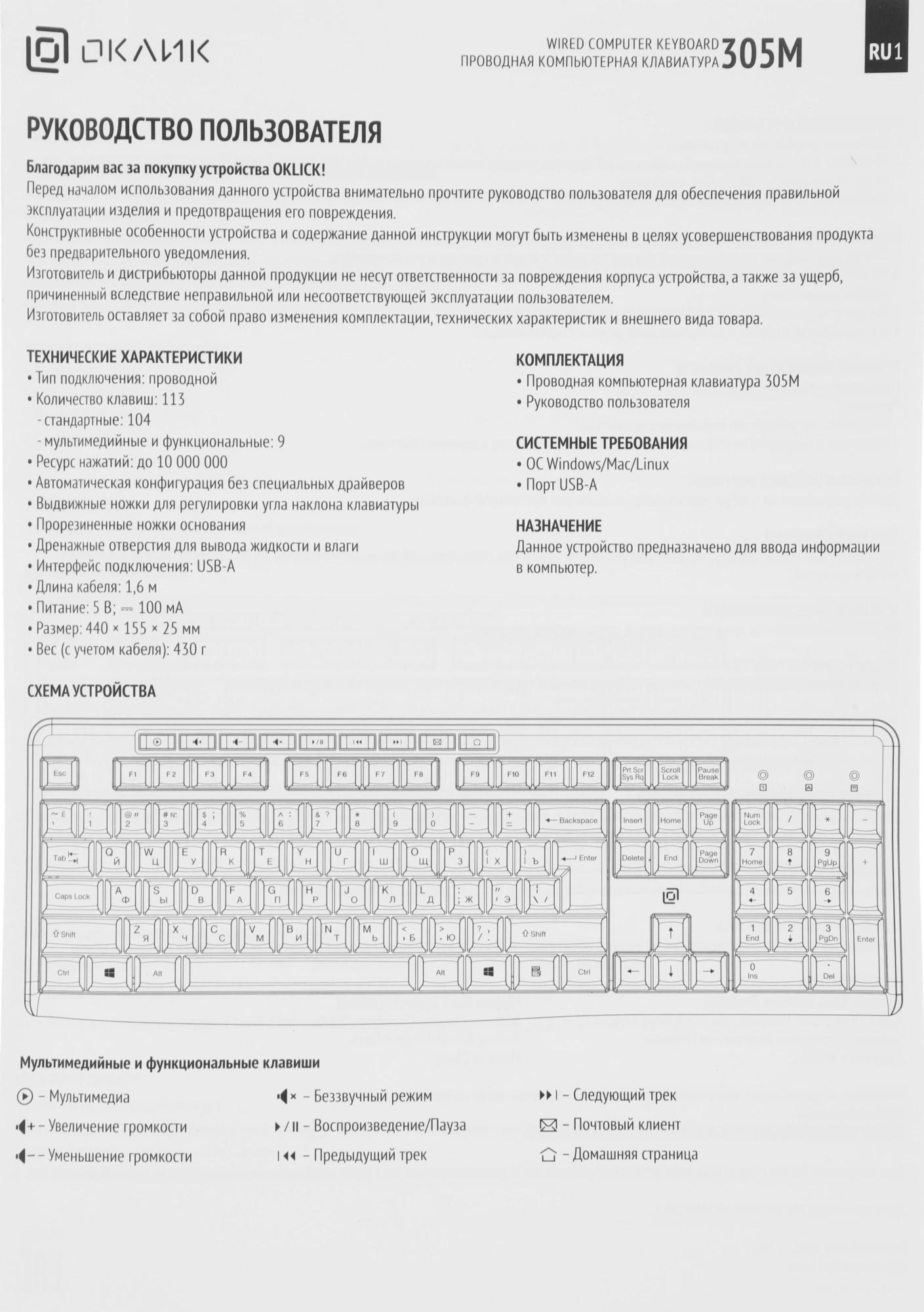 Эргономичная клавиатура с продуманной конструкцией для работы дома и в офисе. Девайс оборудован регулируемыми по высоте ножками. Дополнительные мультимедийные и офисные клавиши обеспячат быстрый доступ и управление нужными приложениями.