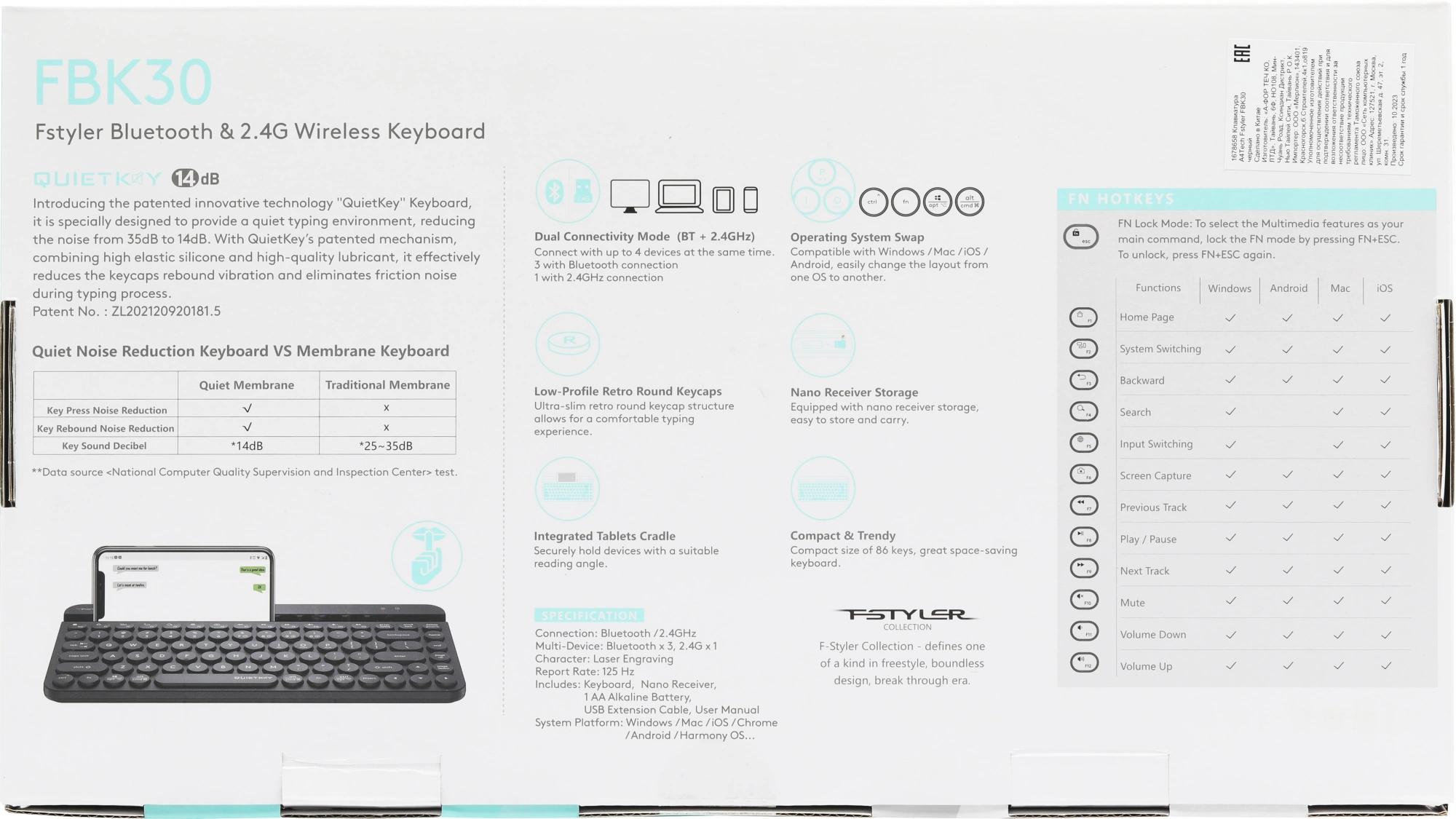 Клавиатура поддерживает два режима подключения - по беспроводной технологии Bluetooth и с помощью USB-ресивера 2, 4 ГГц, и работает на удалении до 10 м, обеспечивая быструю передачу данных без задержек.