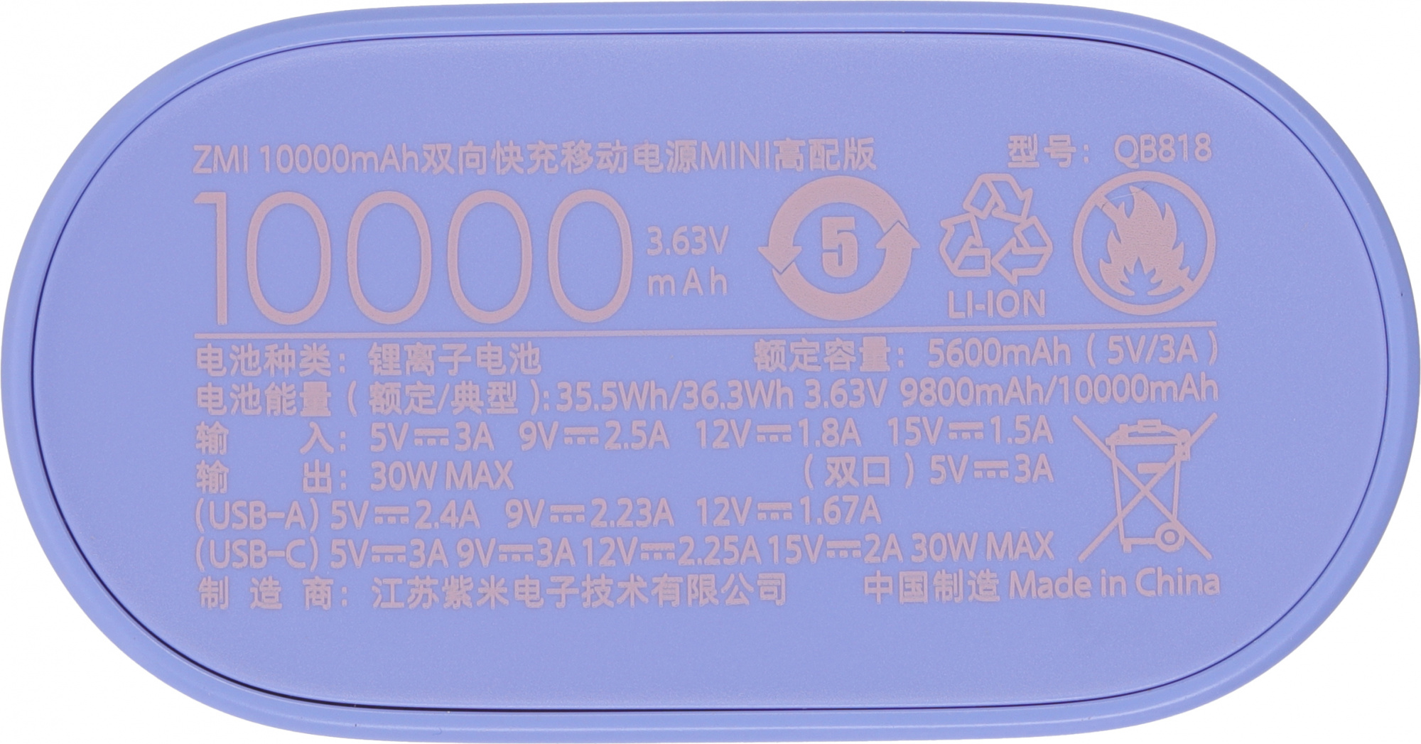 Элегантный, легкий и ультра-компактный внешний аккумулятор емкостью 10000 мAч и максимальной выходной мощностью до 30 Вт.