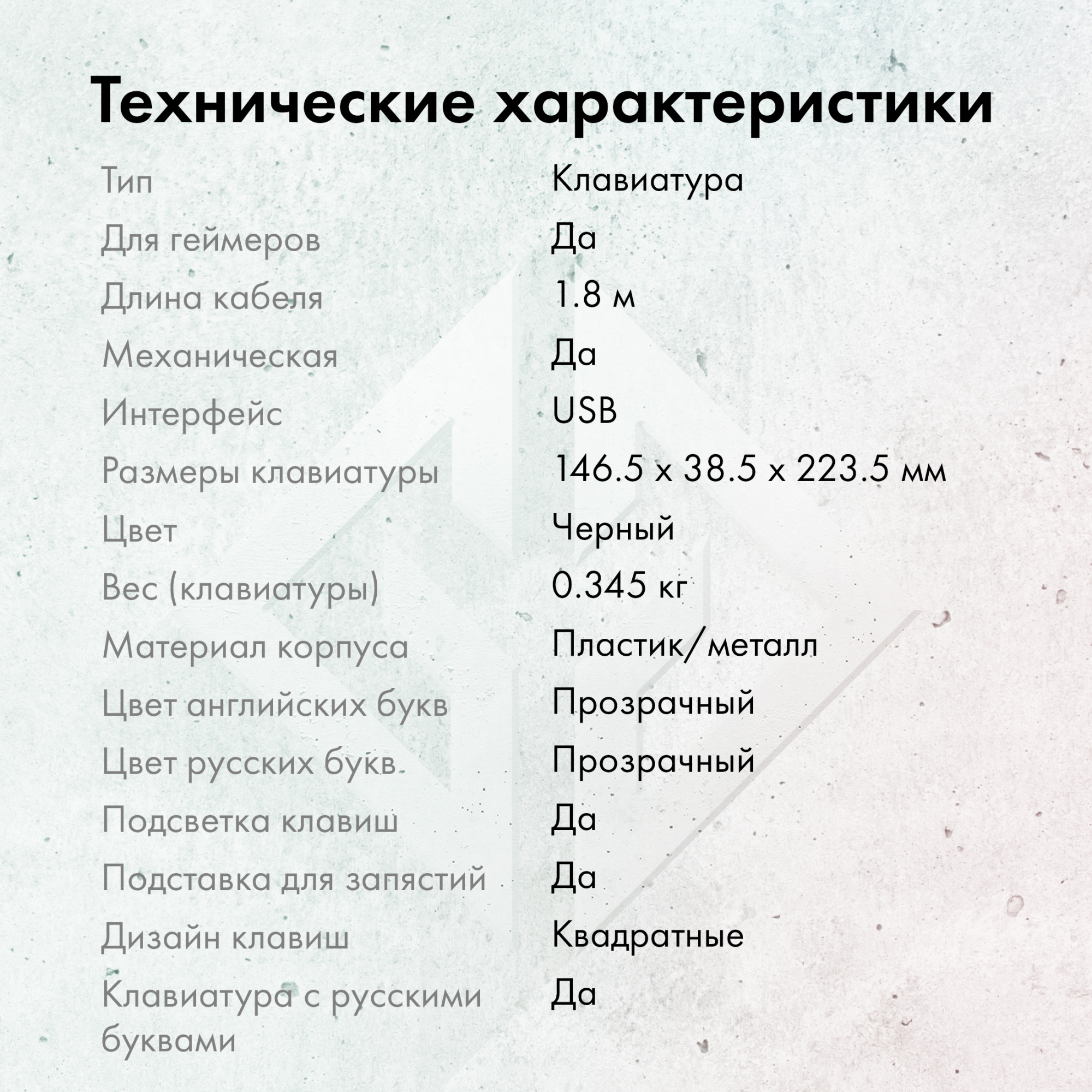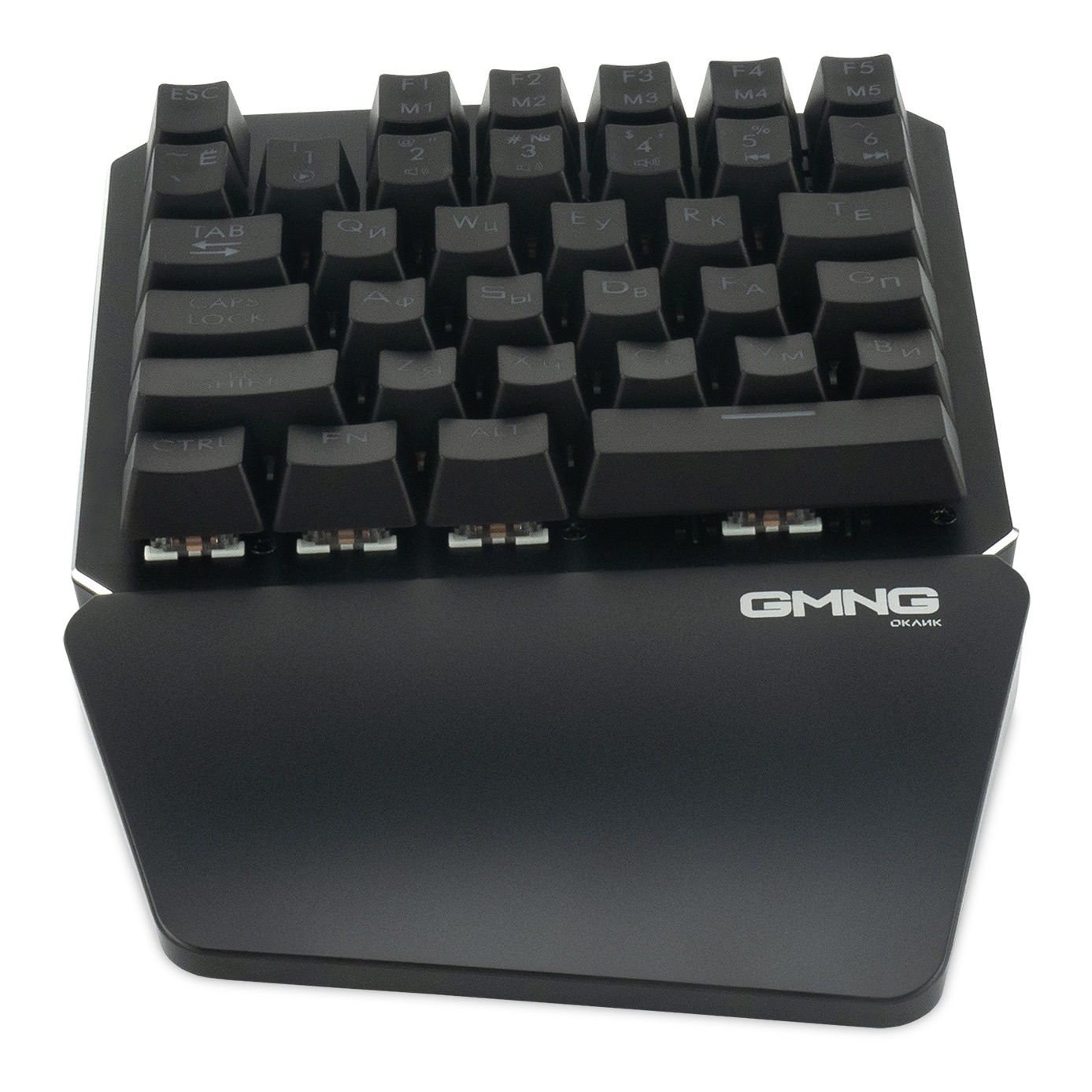 Механический игровой блок, с поддержкой запястья, прорезиненные ножки, коричневые свичи с ресурсом 50 млн кликов, поддержка макросов, регулируемая подсветка, плетеный кабель, ферритовый фильтр, позолоченный коннектор USB, металлическая верхняя панель