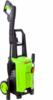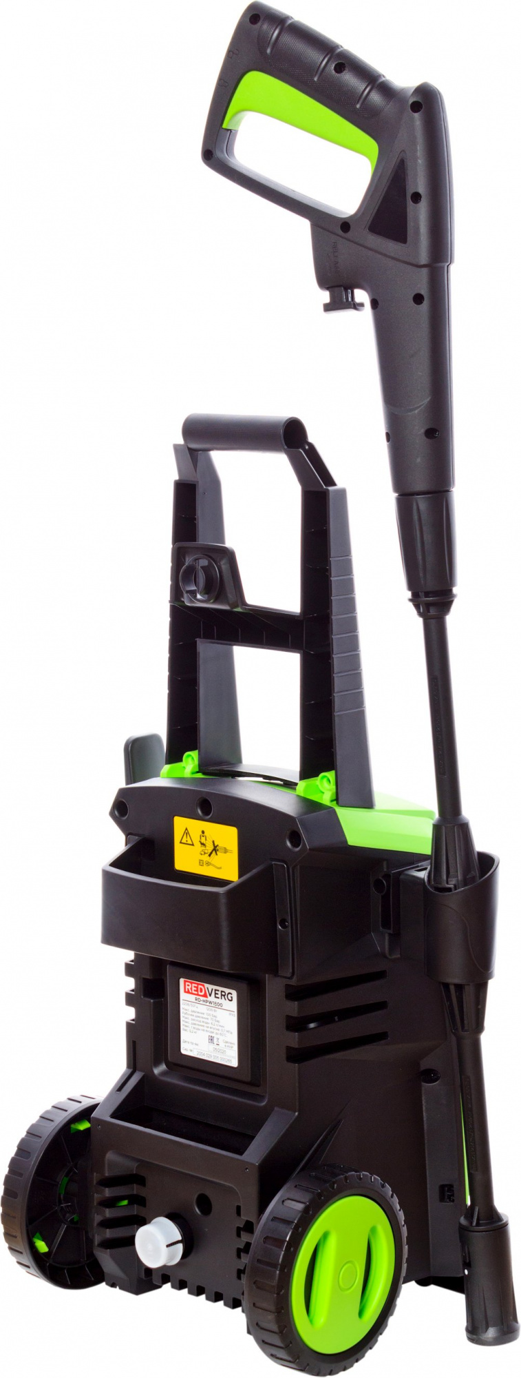 Поворотный выключатель на передней панели. Разъем для подключения шланга на передней панели. Держатель для пистолета на корпусе. Металлическая помпа с плунжером из нержавеющей стали. Система автоматической остановки. Встроенные колеса для удобного перемещения.