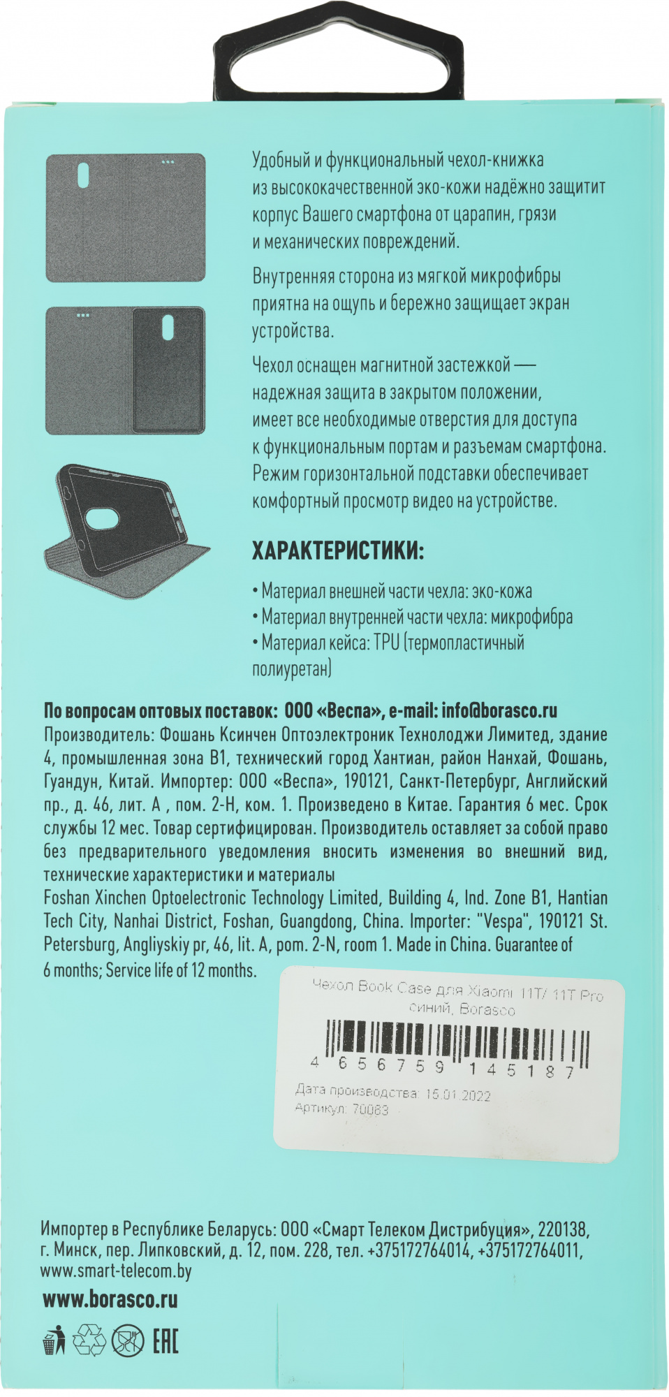 Чехол-книжка BoraSCO разработан для Xiaomi 11T/ 11T Pro. Внешний материал чехла: искусственная кожа, а ванна сделана из силикона, для надёжной фиксации верхней крышки предусмотрен магнит, который располагается сбоку, при этом не мешая активно пользоваться аксессуаром, есть функция подставки.