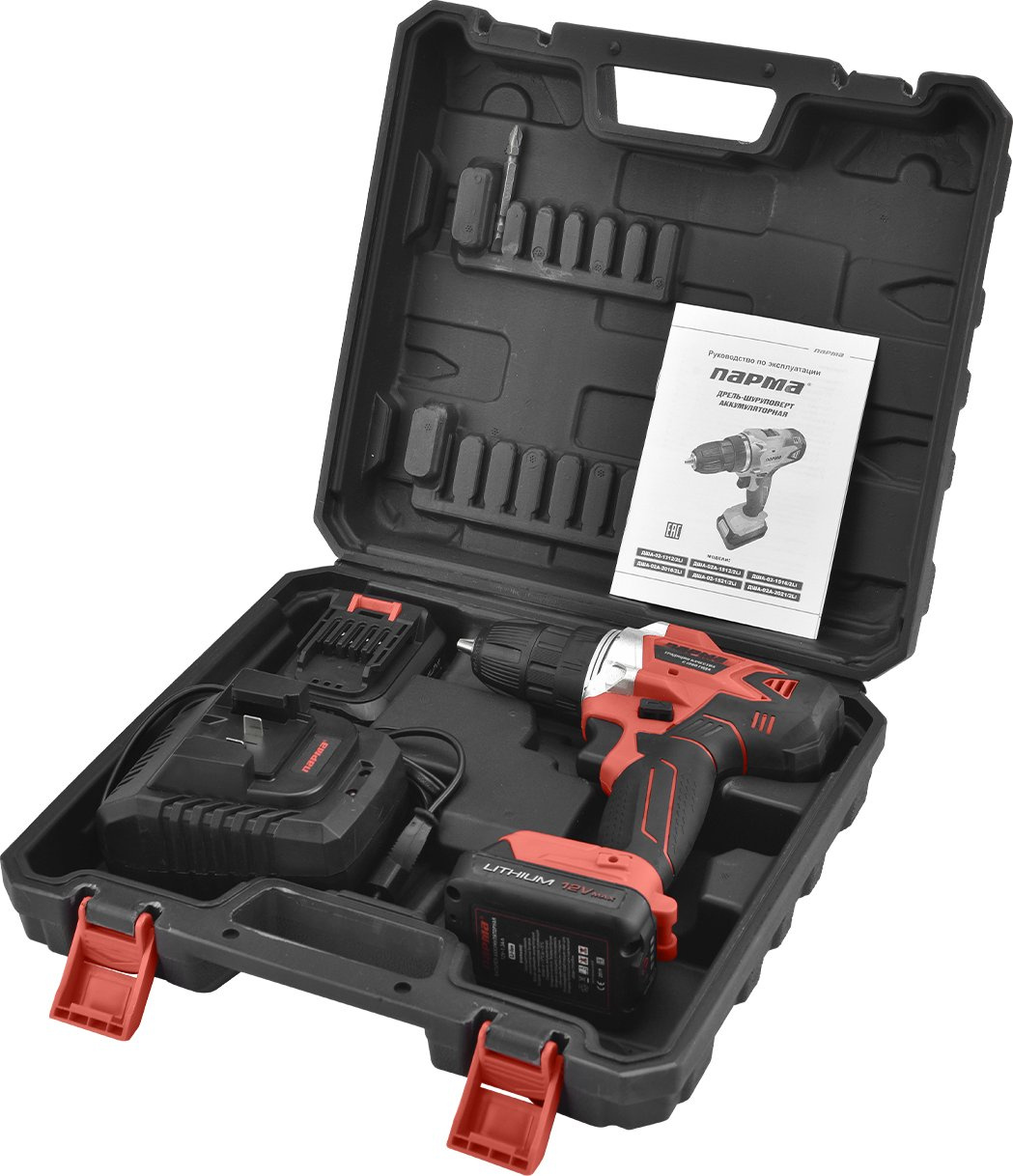 Быстрозажимной патрон. Индикатор уровня заряда аккумулятора. Эргономичная рукоятка с противоскользящим покрытием ERGOgrip. Двухскоростной редуктор, 20 режимов регулировки крутящего момента + 1 режим сверления. Плавная регулировка скорости вращения. Наличие функции реверса. LED подсветка.
