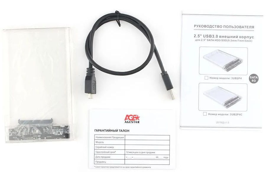 Внешний корпус для HDD/SSD AgeStar 3UB2P4C SATA III USB3.0 пластик прозрачный 2.5"