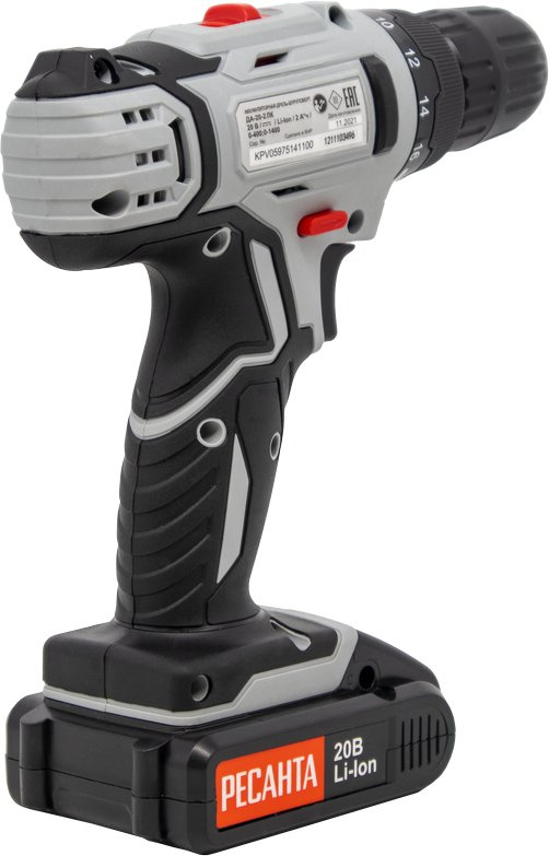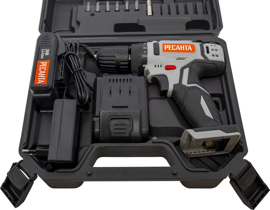 Дрель-шуруповерт, 2 аккумулятора, зарядное устройство, набор бит - 5 шт. с насадкой, кейс.