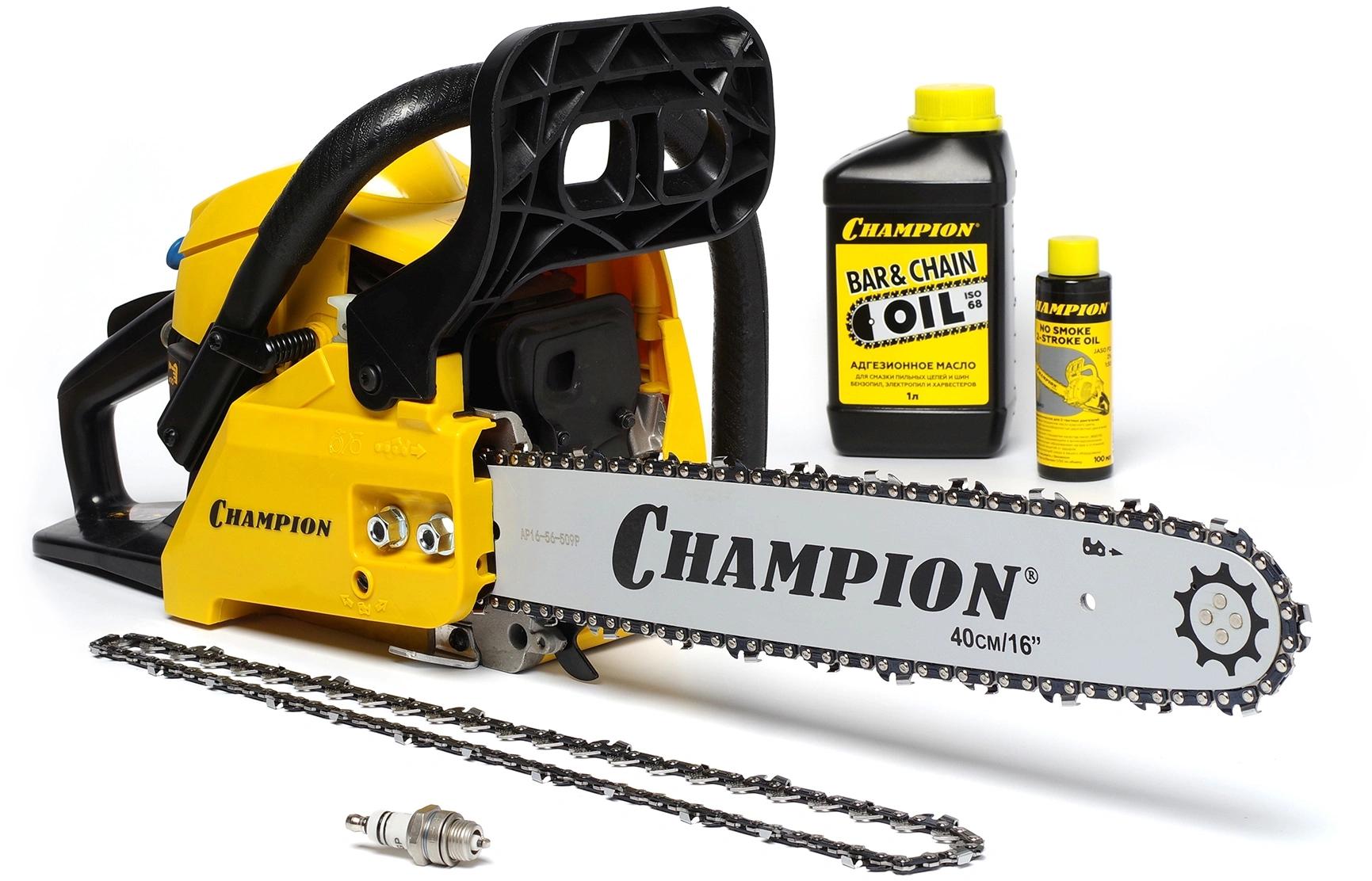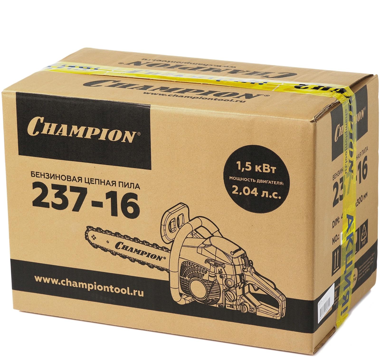 Бензопила Champion 237-16" используется при валке деревьев, обрезке ветвей, для распиливания заготовок из древесины.