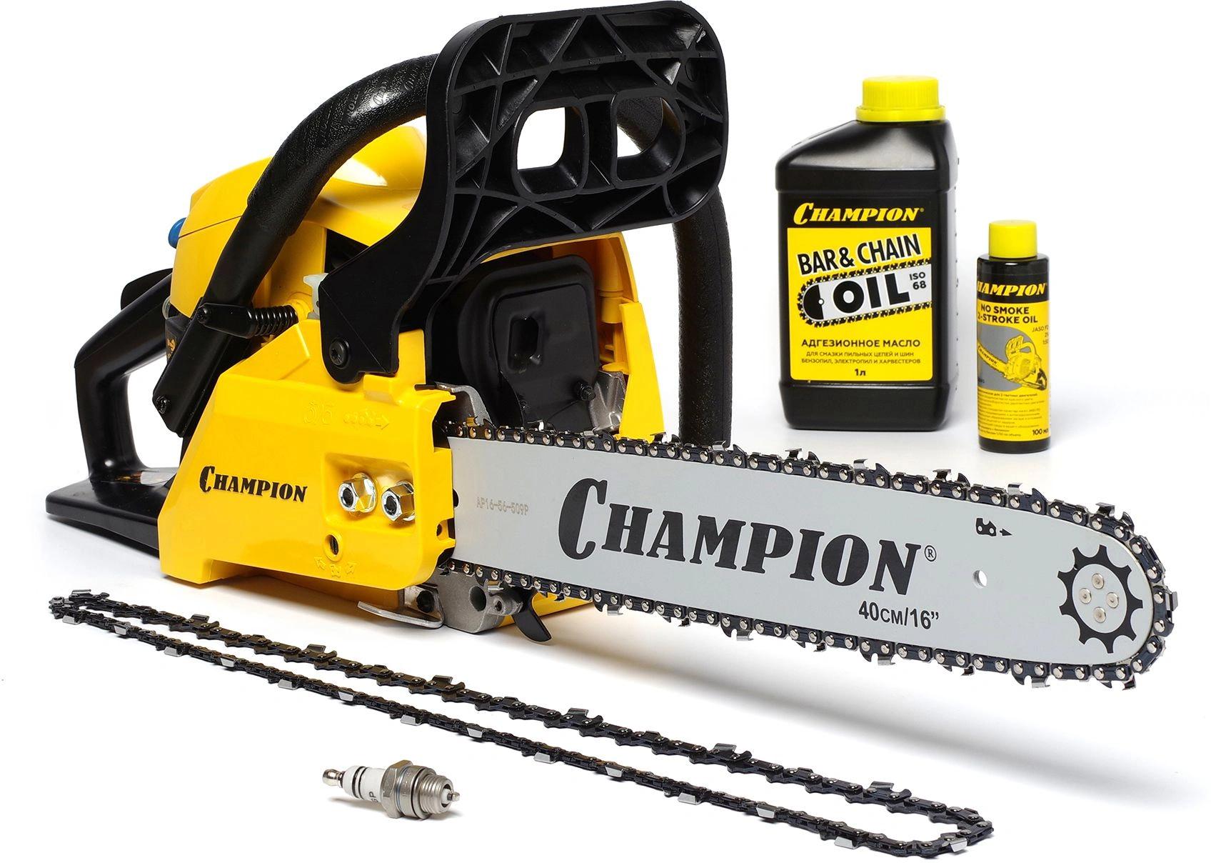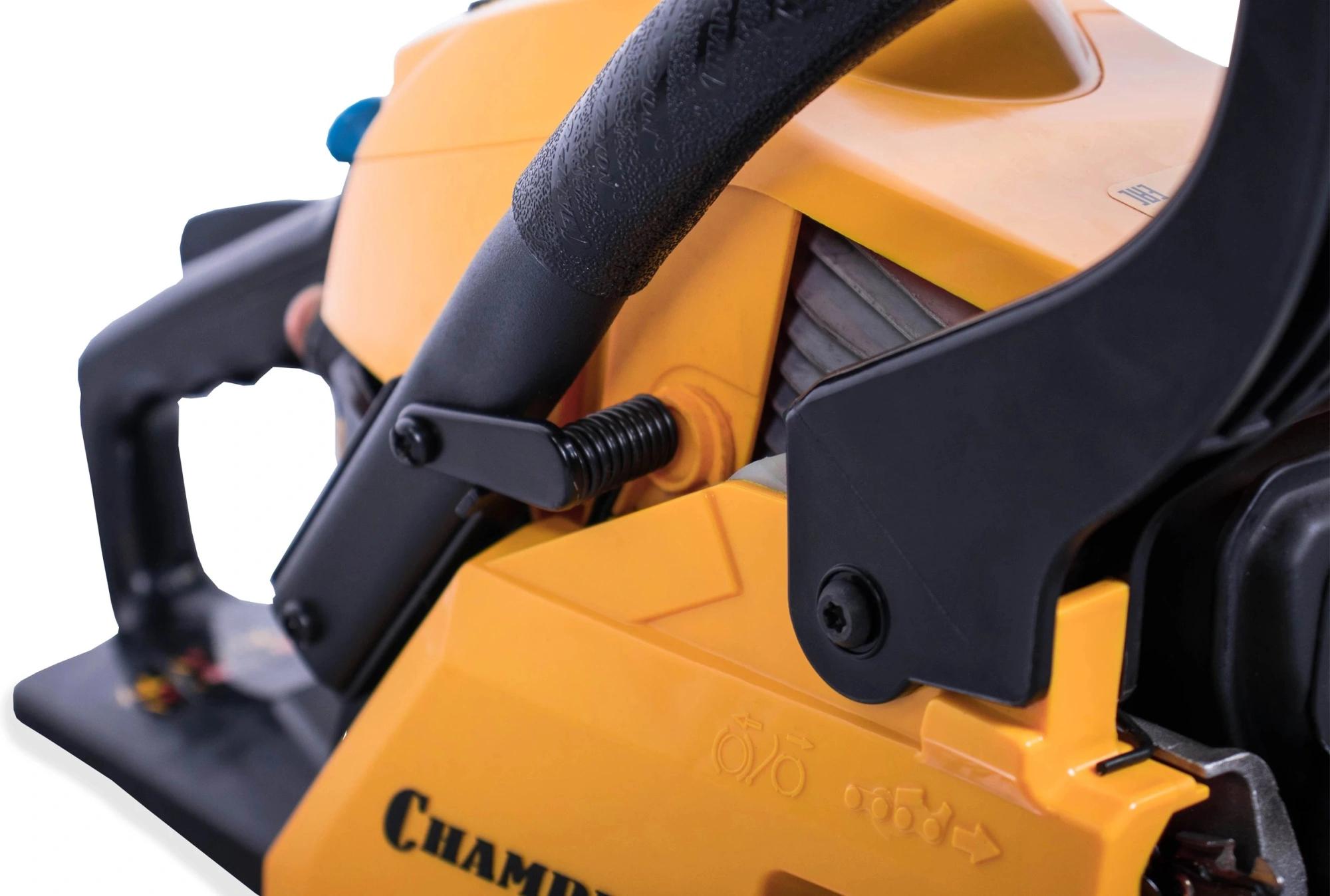Бензопила Champion A241-16" используется при валке деревьев, обрезке ветвей, для распиливания заготовок из древесины.