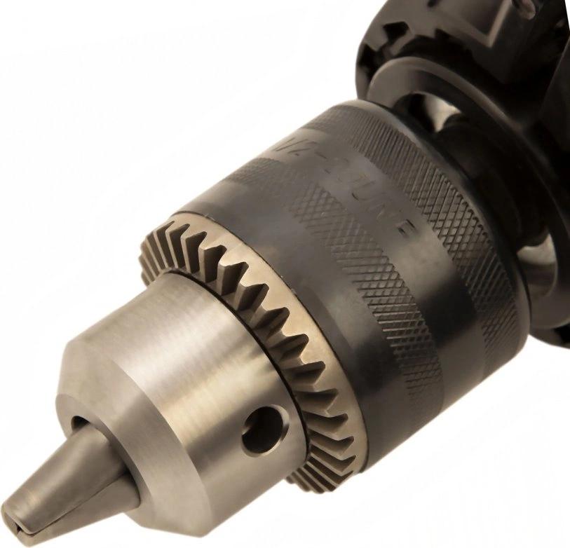 Широкий диапазон хвостовиков оснастки позволяет работать со сверлами маленького и большого диаметра. Для использования левосторонних сверл предусмотрен реверс, меняющий направление вращения патрона. Фиксация клавиши регулятора и кнопки включения обеспечивает комфортную работу.
