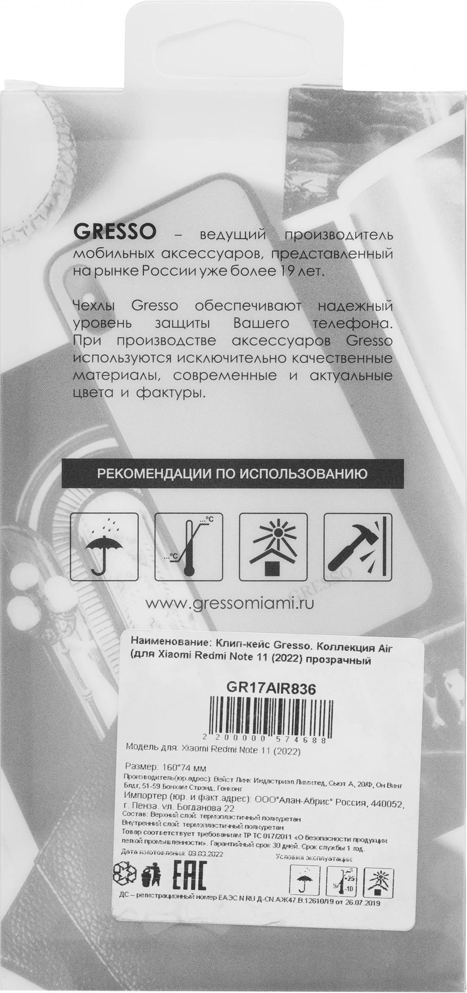 Чехол (клип-кейс) Gresso для Xiaomi Redmi Note 11 Air прозрачный (GR17AIR836)
