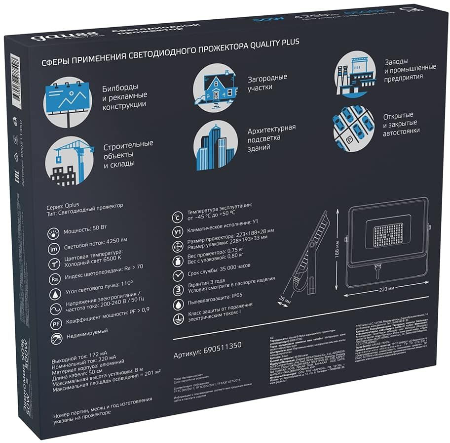 Прожектор уличный Gauss Qplus 690511350 светодиодный 50Втсерый