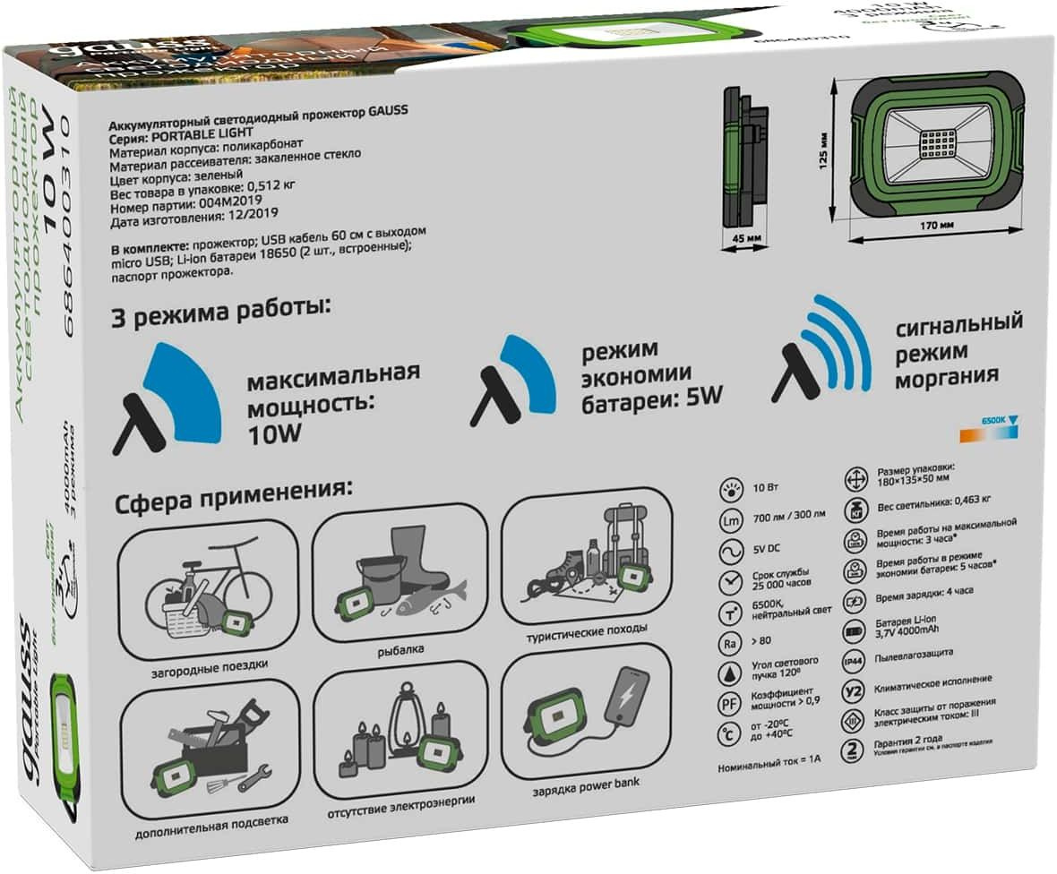 Прожектор уличный Gauss 686400310 светодиодный 10Втчерный