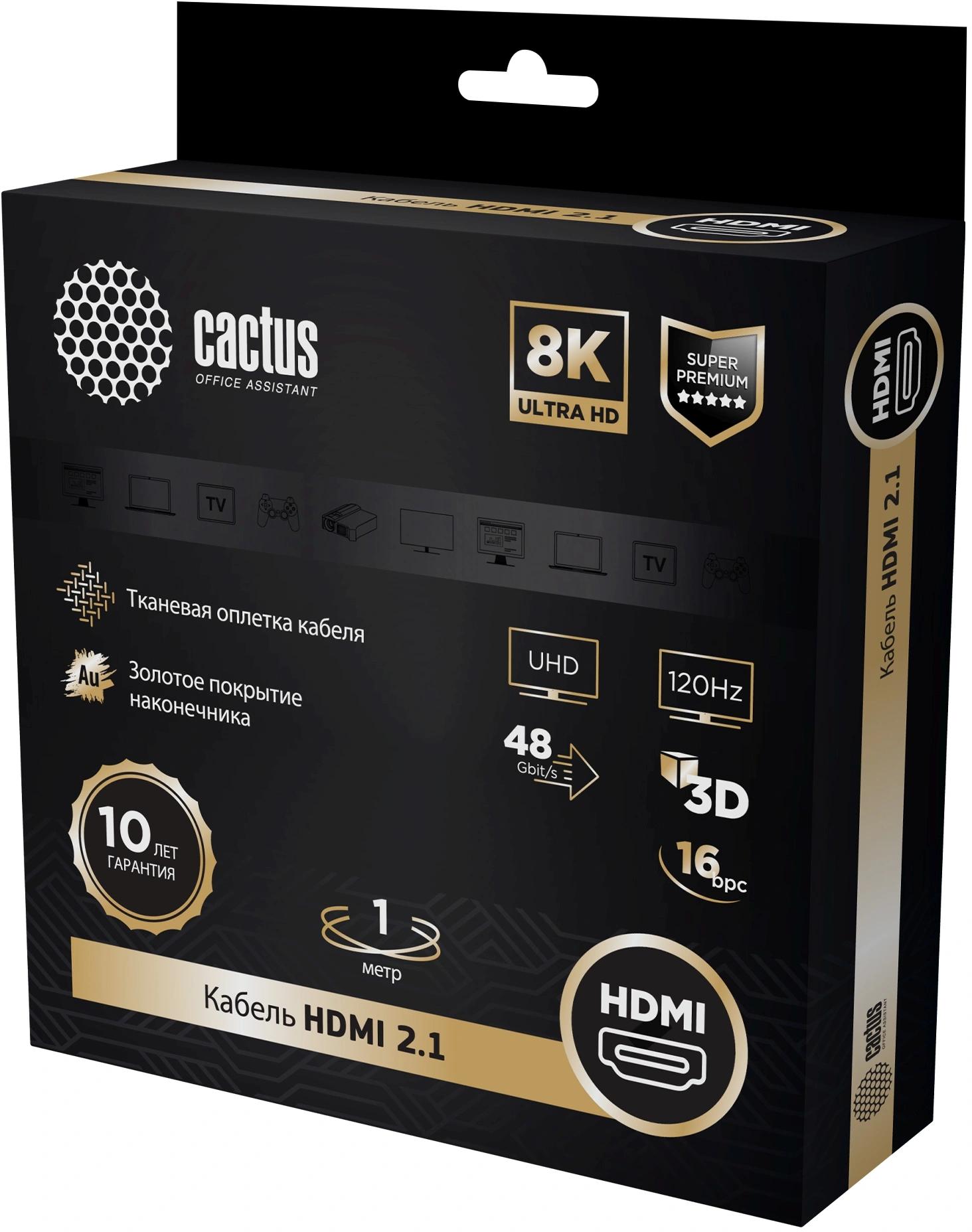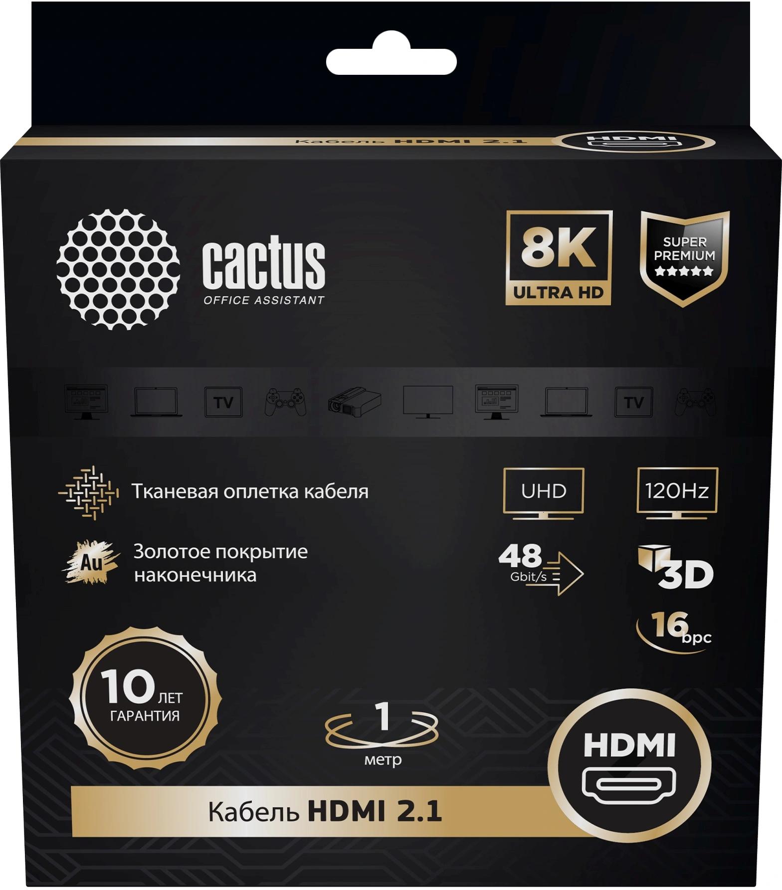 Кабель аудио-видео Cactus CS-HDMI.2.1-1 HDMI (m)/HDMI (m) 1м. позолоч.конт. серебристый