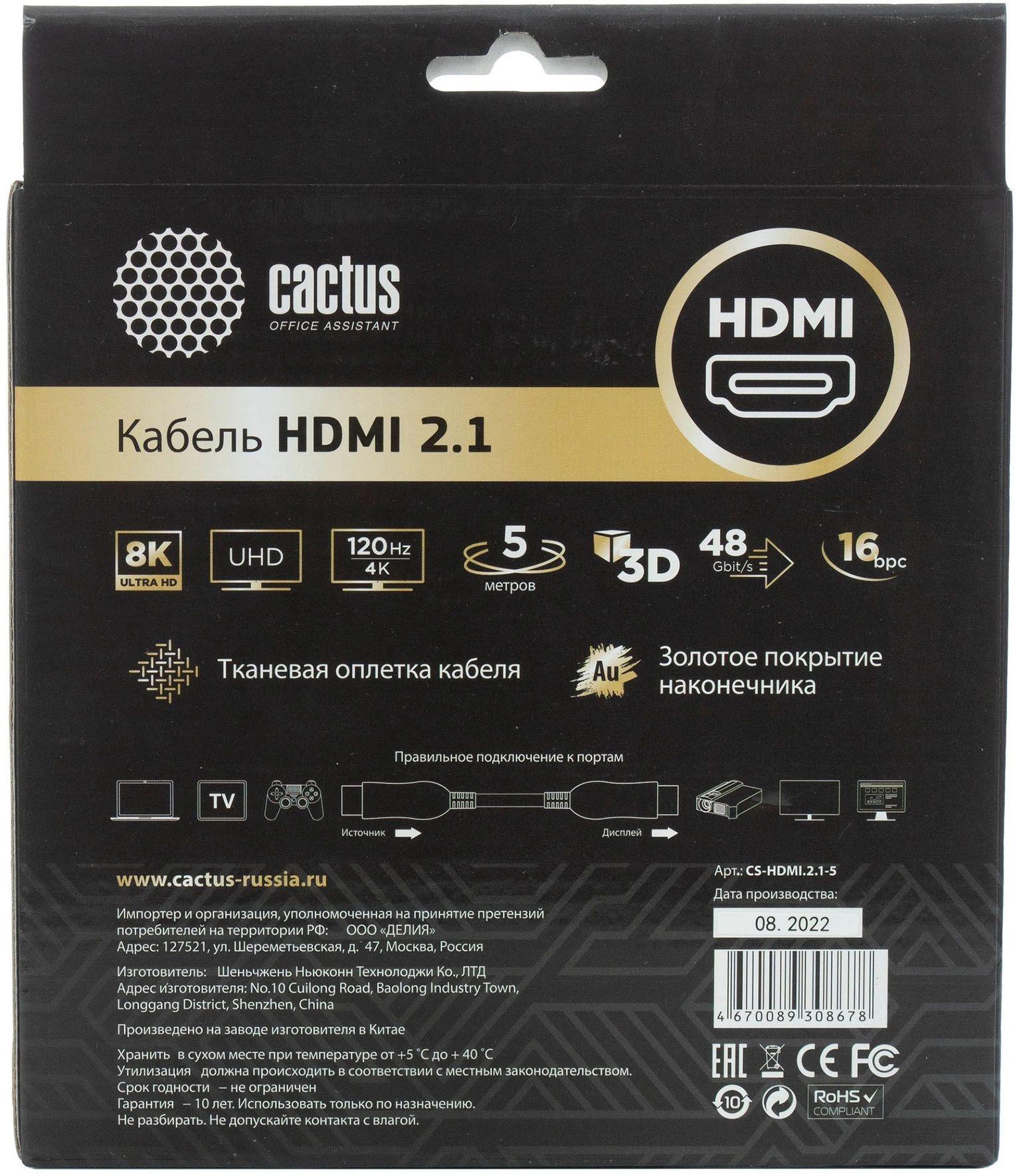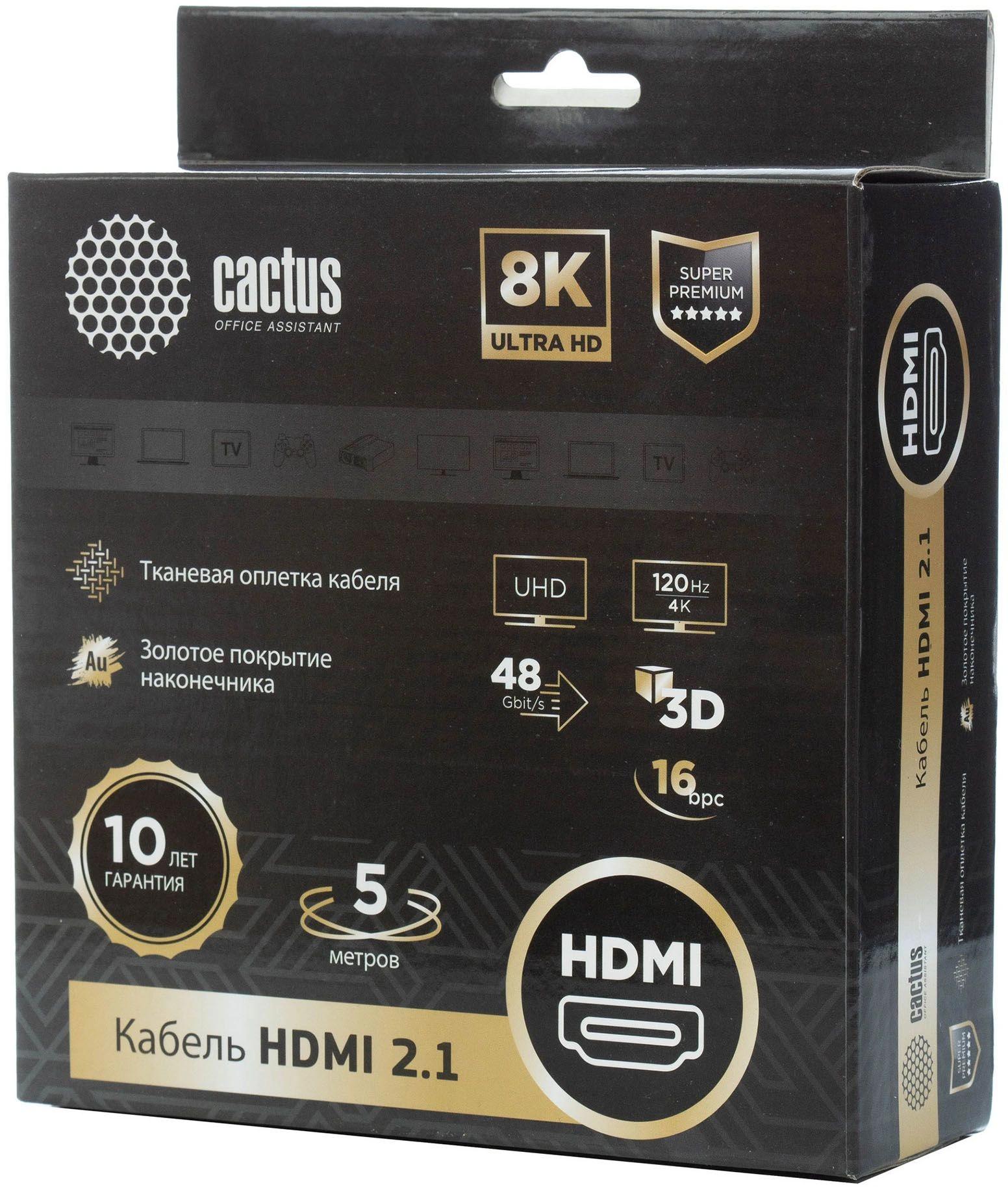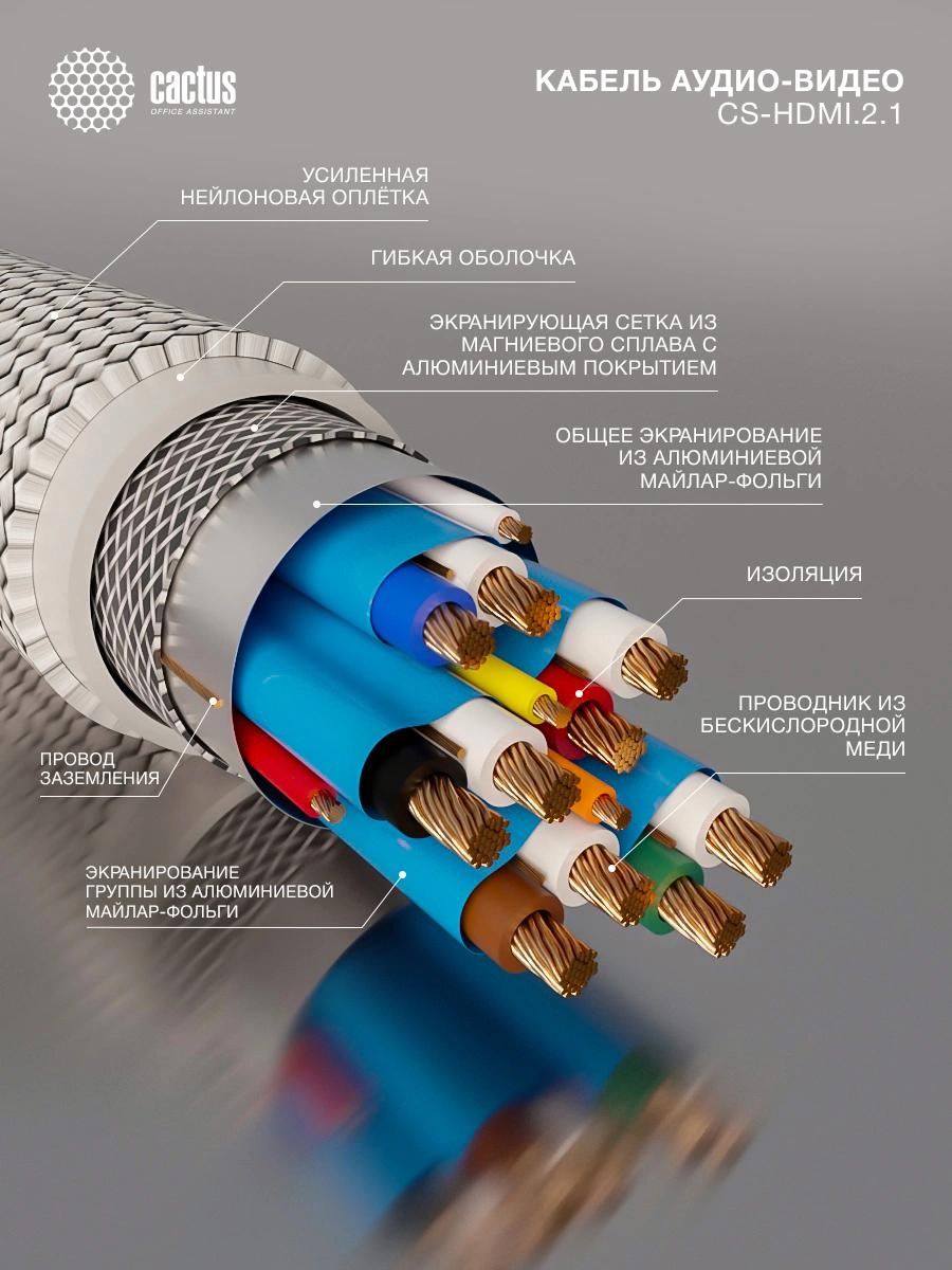 Кабель аудио-видео Cactus CS-HDMI.2.1-5 HDMI (m)/HDMI (m) 5м. позолоч.конт. серебристый