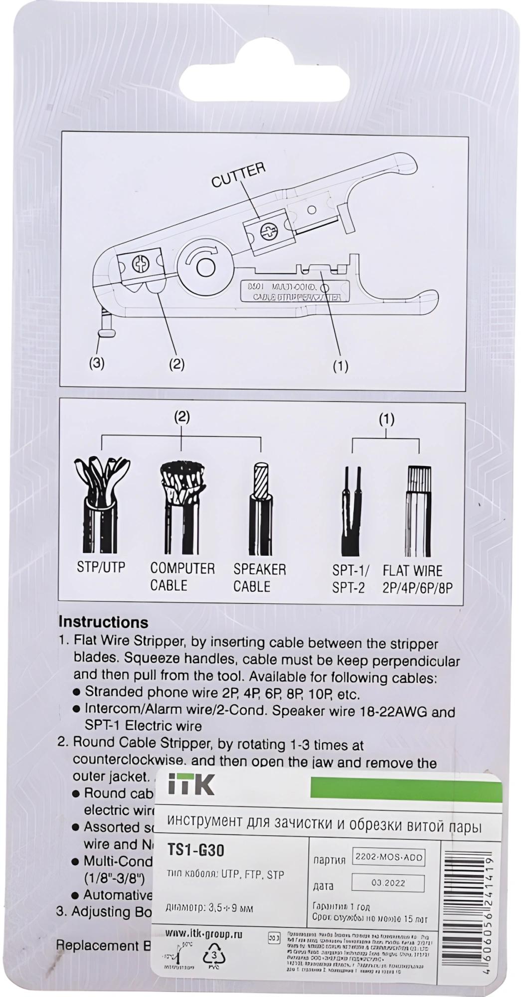 Инструмент ITK TS1-G30 для зачистки кабеля UTP (упак:1шт) серый