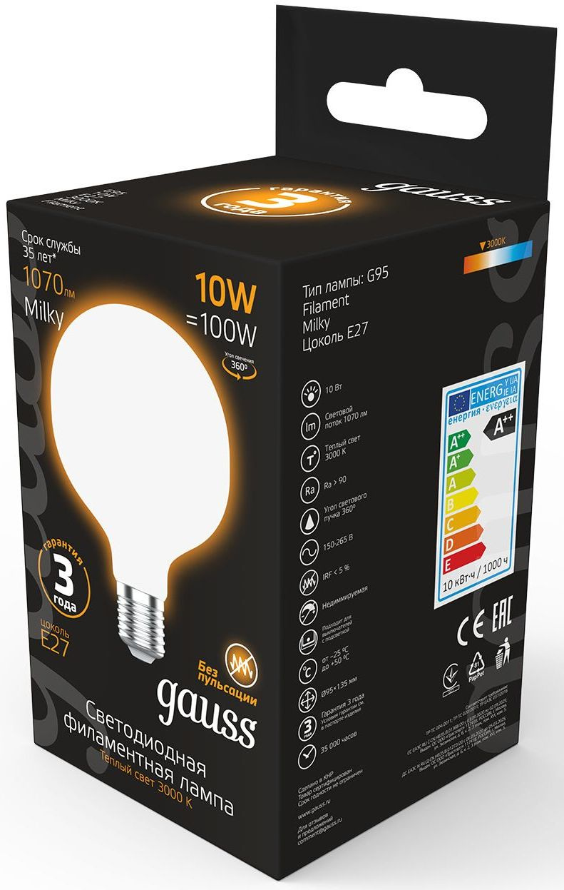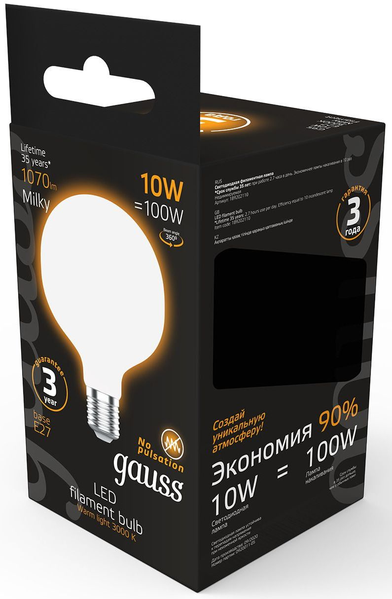 Лампа светодиодная Gauss Filament 189202110 10Вт цок.:E27 шар 220B св.свеч.бел.теп. (упак.:1шт)