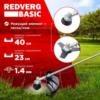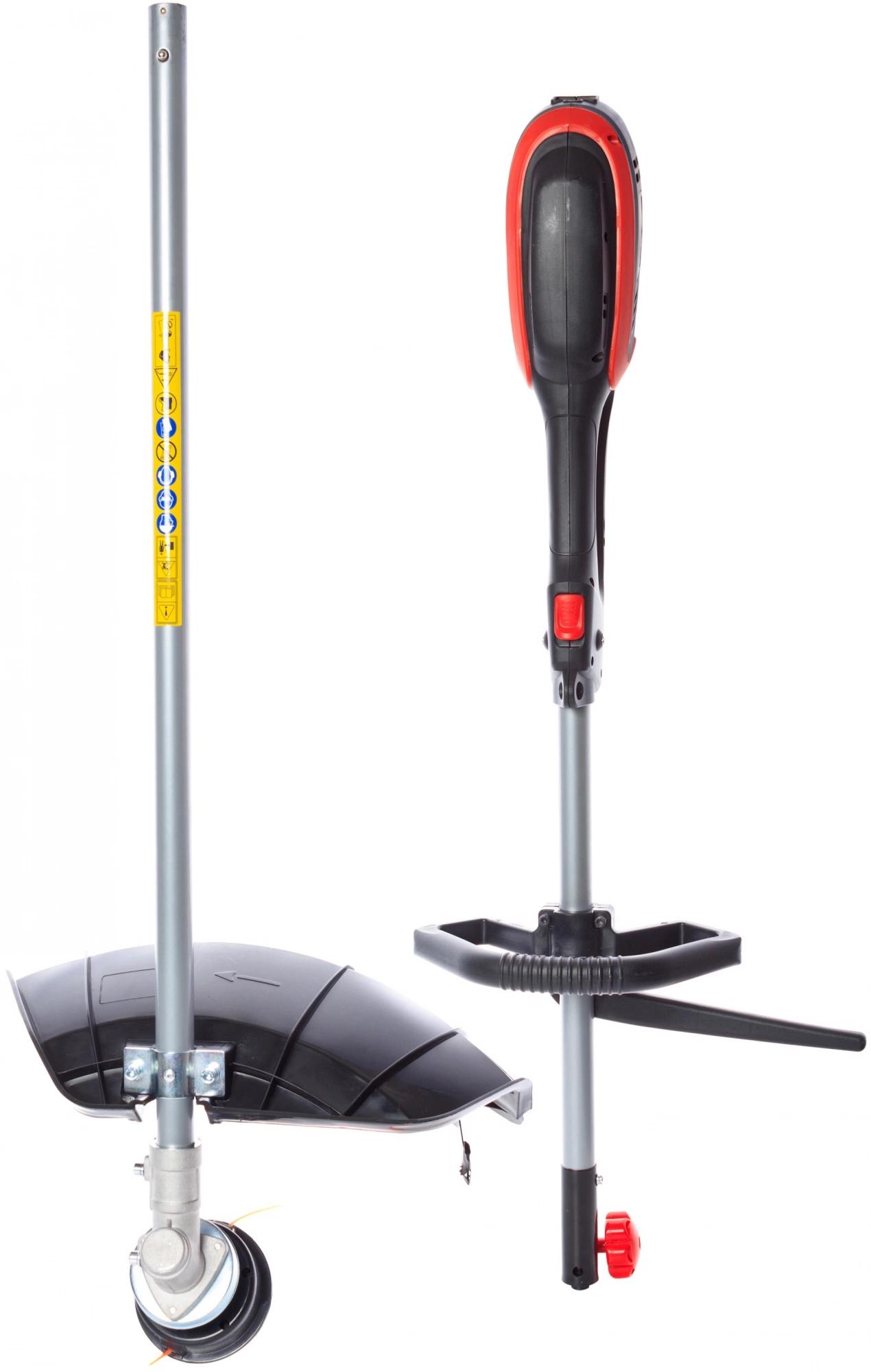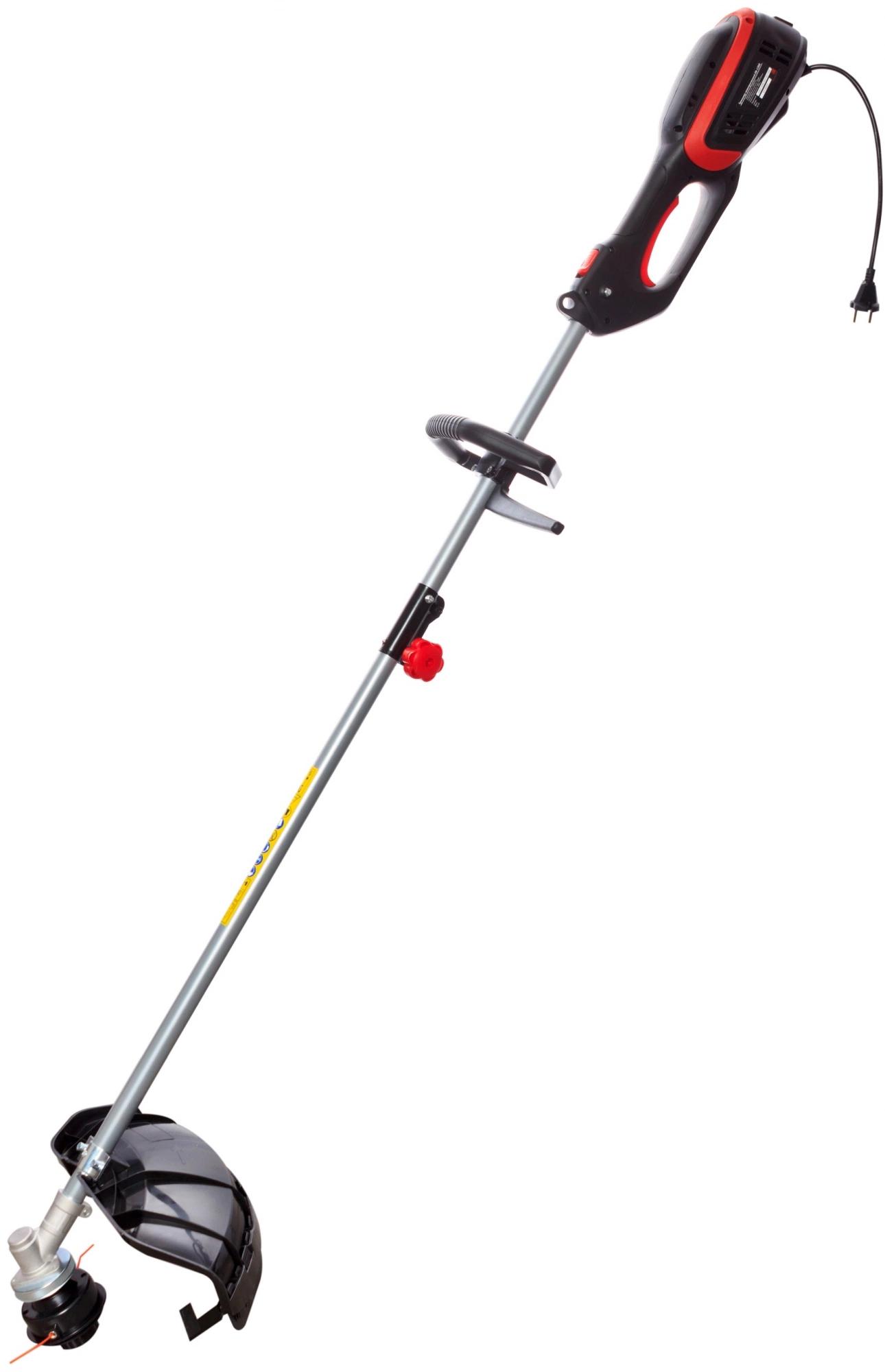 2 оснастки: леска и нож; Сбалансированная конструкция; Питание от бытовой сети - отсутствие токсичных выхлопов, низкий уровень шума; Защита двигателя от перегрева; Защита от случайного включения.