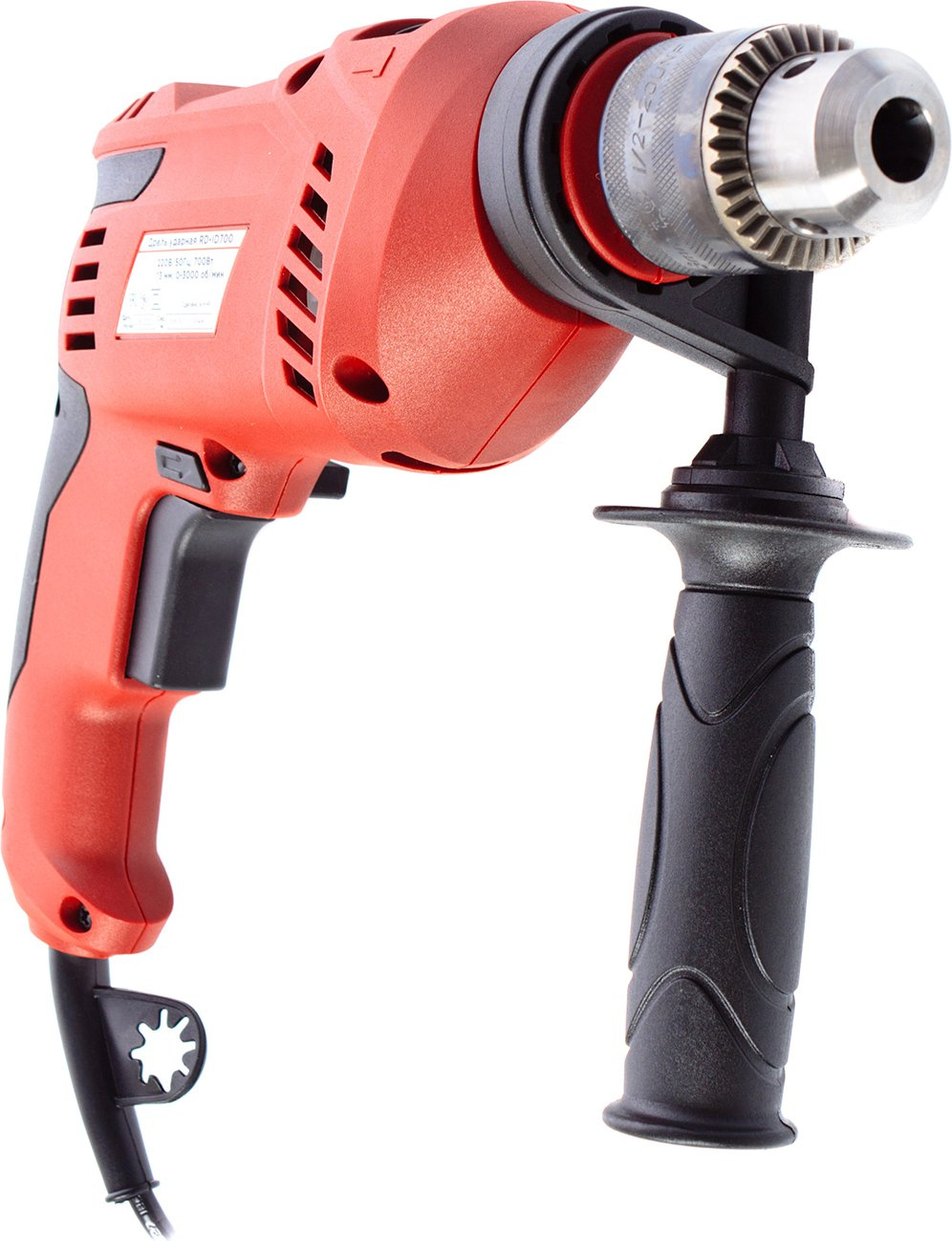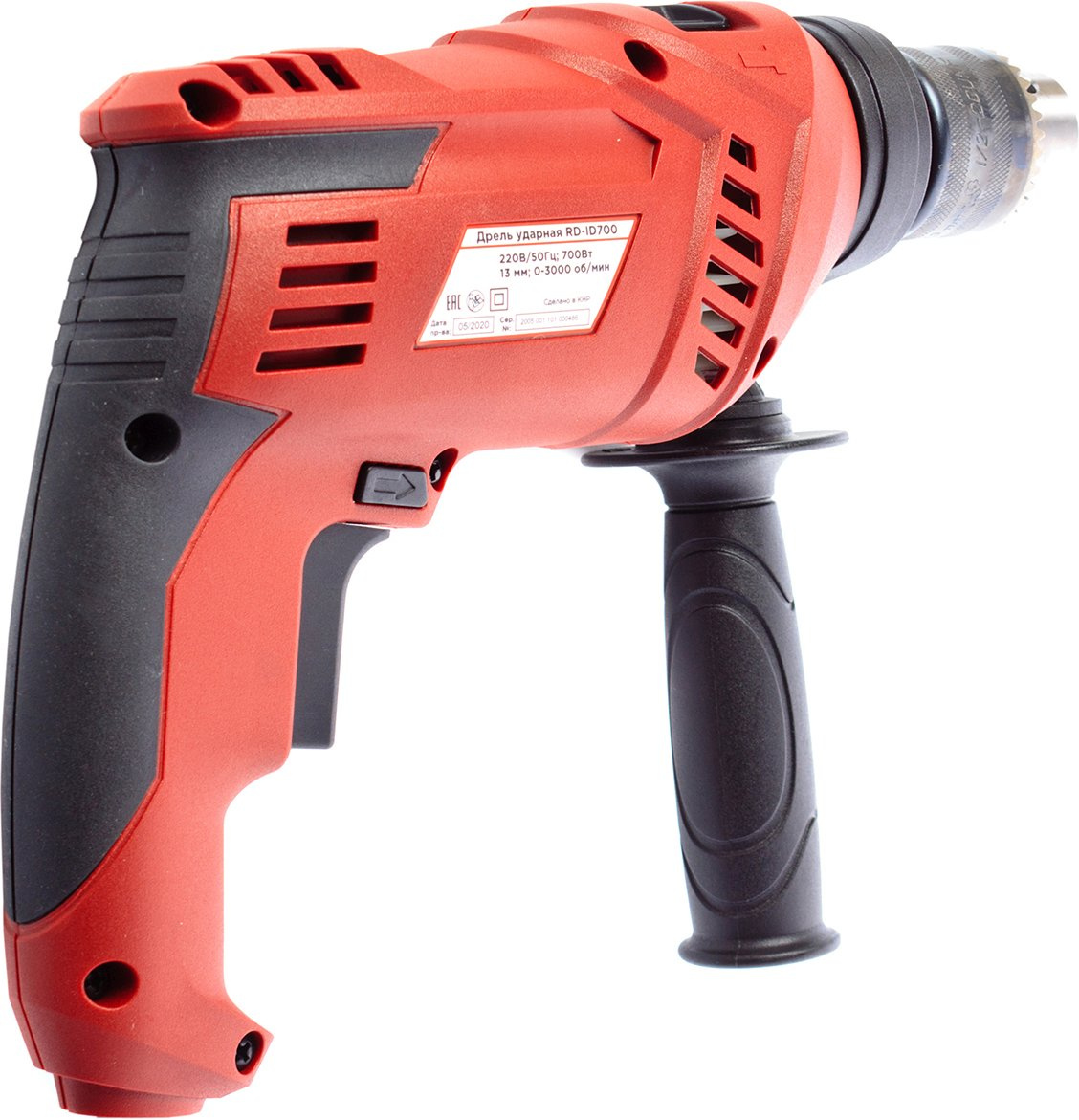 Дрель ударная; ключ для патрона; вспомогательная рукоятка; ограничитель глубины сверления; инструкция по эксплуатации; коробка (упаковка).