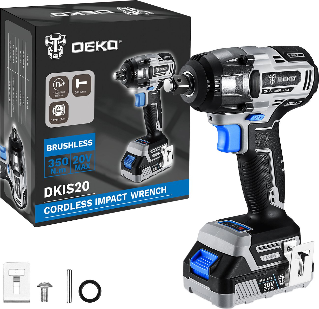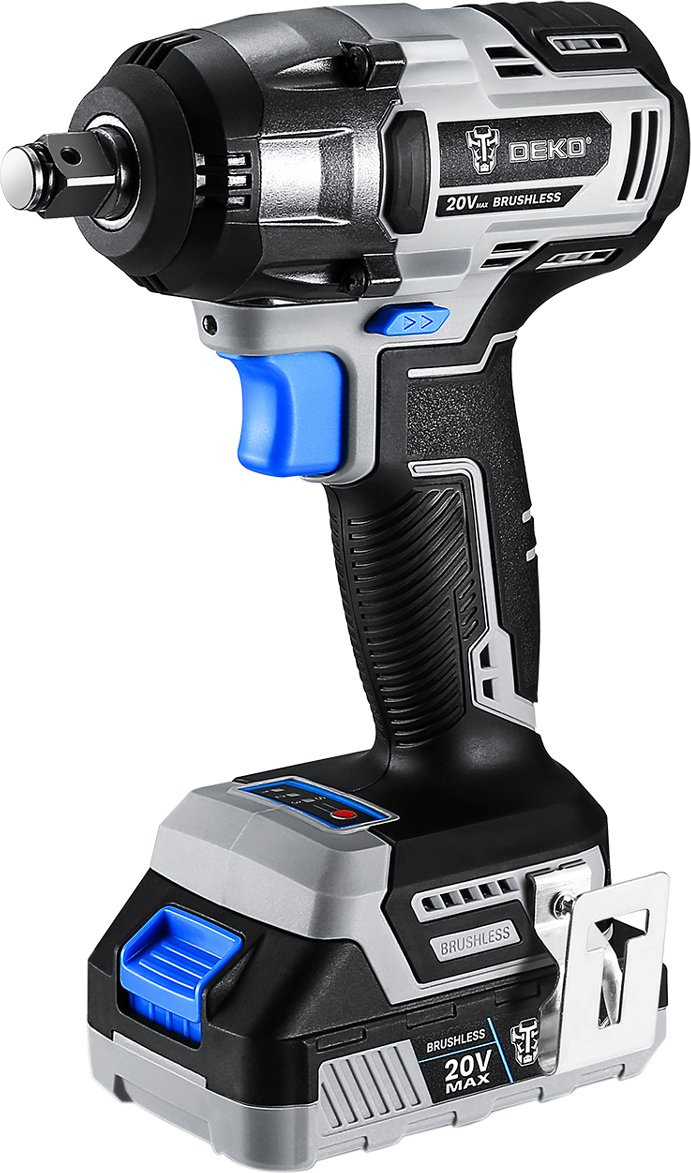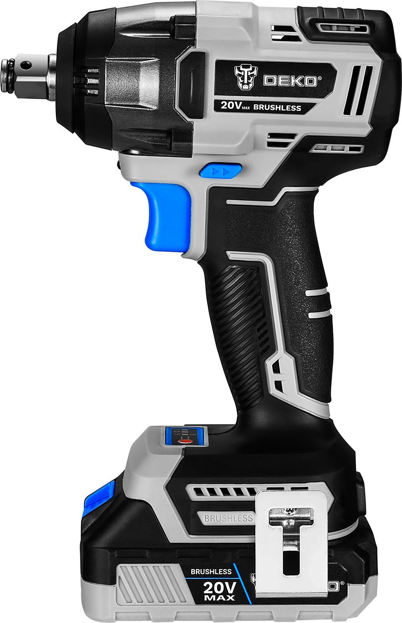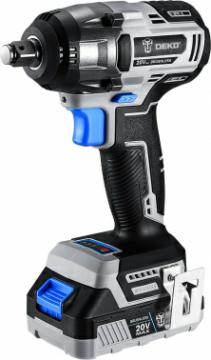 Гайковерт DKIS20, аккумулятор, зарядное устройство, скоба поясная, уплотнительное кольцо, штифт, упаковка.