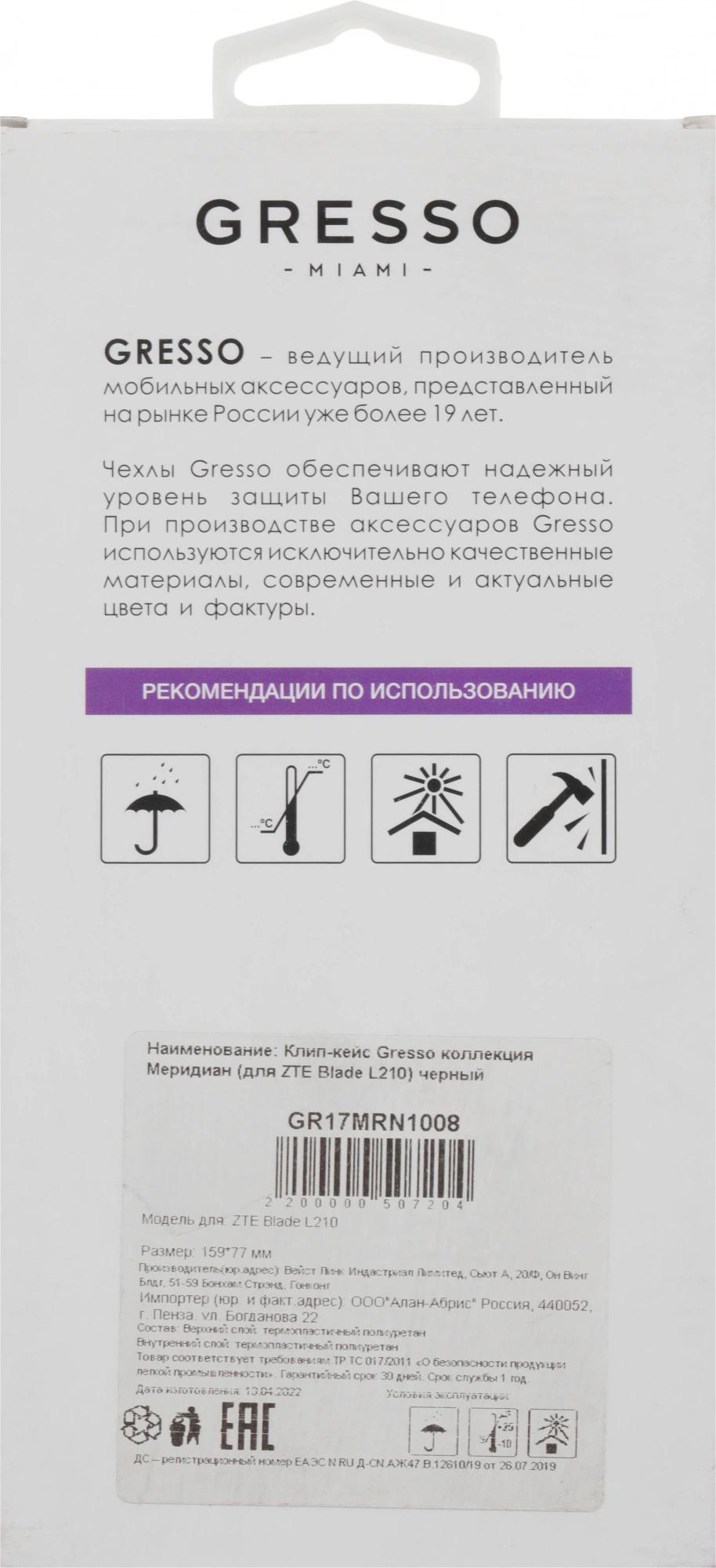 Чехол (клип-кейс) Gresso для ZTE Blade L210 Meridian черный (GR17MRN1008)