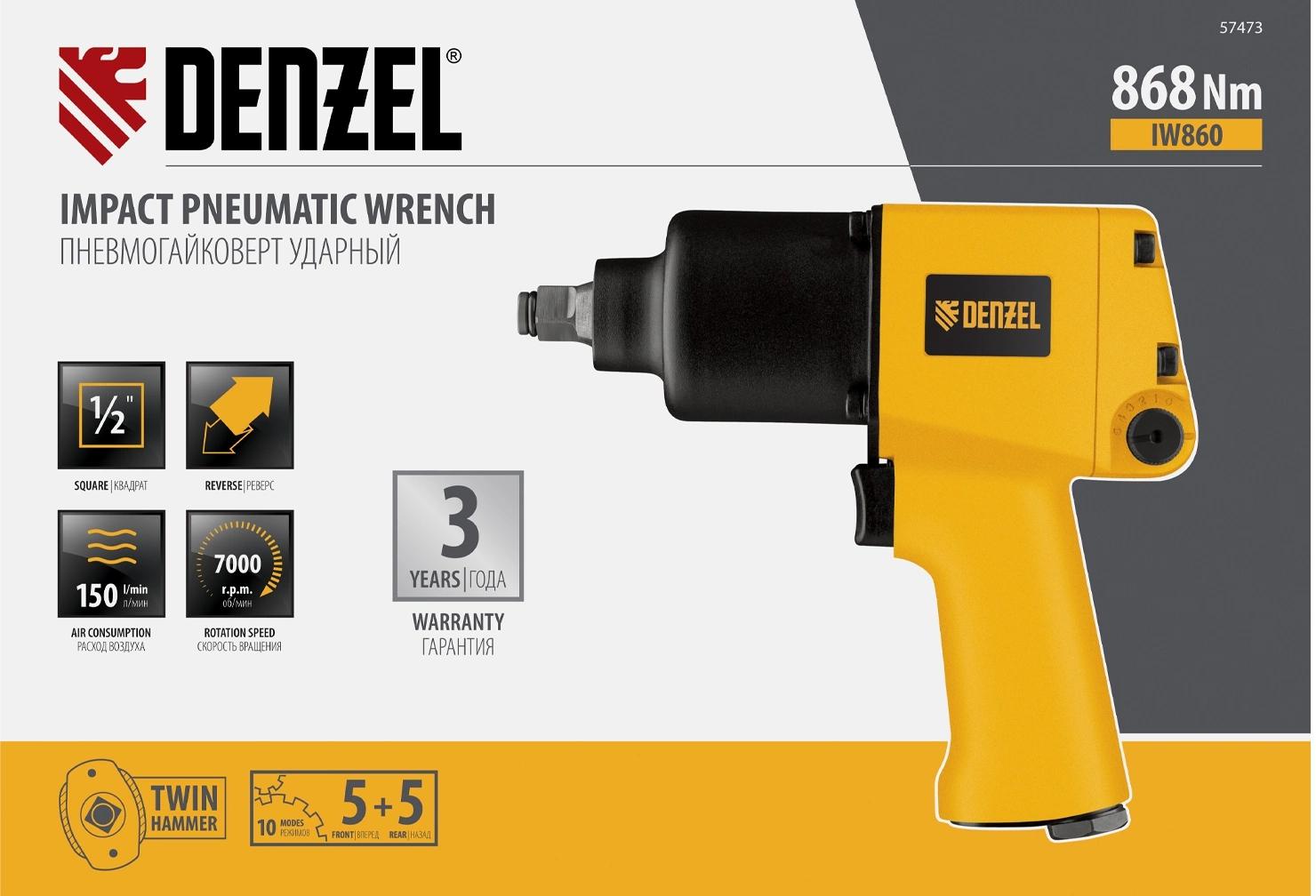 Гайковерт Denzel IW860 150л/мин желтый/черный
