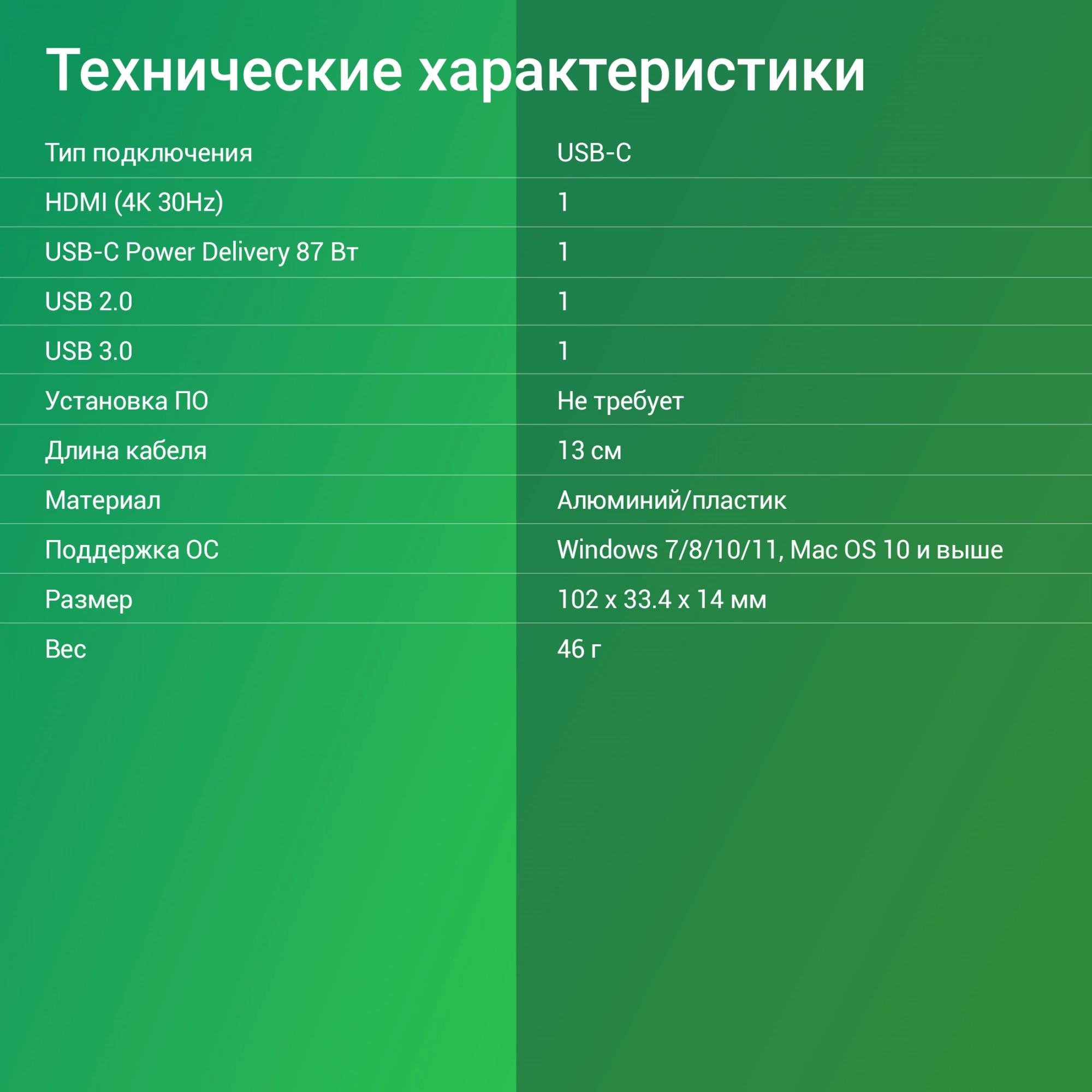 Type-C док-станция DIGMA, 5 портов (HDMI (4K@30Hz, FULL HD@60Hz) , USB-C PD 87W, Lan 100mb, 1xUSB 3.0, 1xUSB 2.0