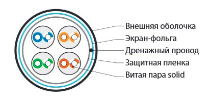 Кабель информационный Hyperline FUTP4-C5E-S24-IN-LSZH-GY-305 кат.5E F/UTP 4X2X24AWG LSZH внутренний 305м серый