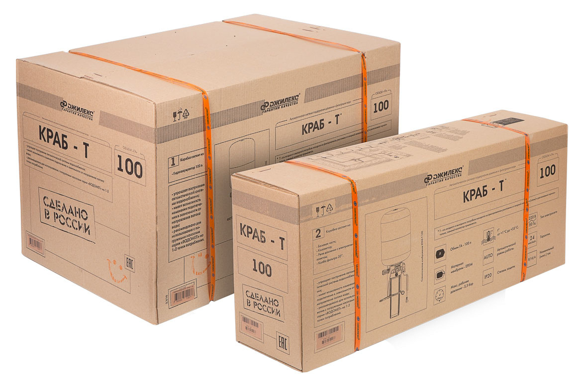 Гидроаккумулятор 100 л.; пластм. колба для картридж BIG BLUE 20"; ключ для колбы; манометр; устройство индикации месяца замены фильтрующего картриджа; съемный коллектор, который содержит встроенный шаровой кран
