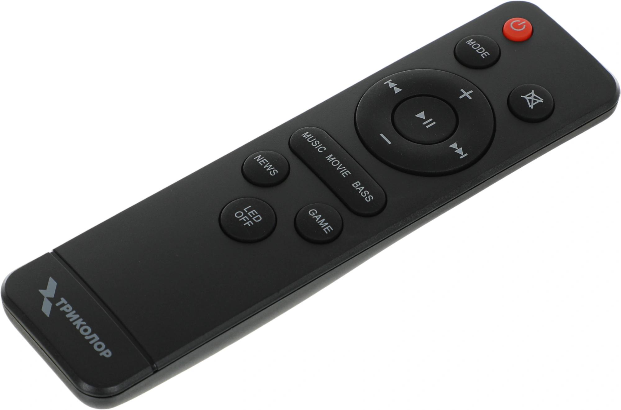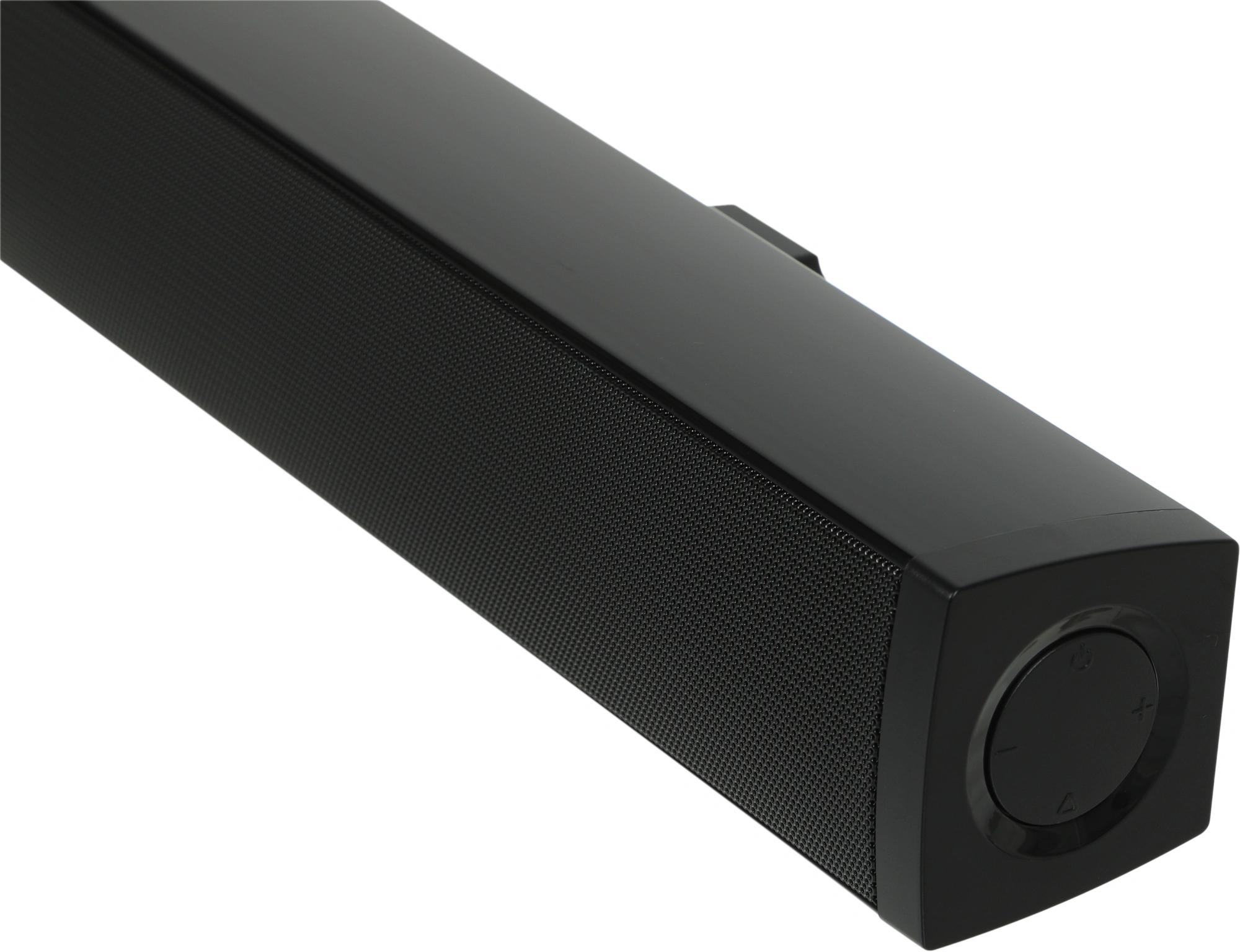 Саундбар с беспроводным сабвуфером для улучшения аудиохарактеристик телевизора, а также воспроизведения звука от различных источников: проекторы, смартфоны, медиаплееры. Подключение к источнику звука происходит с помощью Bluetooth, проводного оптического или линейного соединения.