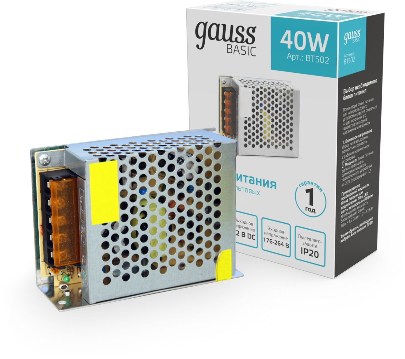 Блок питания Gauss Basic для лен.светод. серый (BT502)