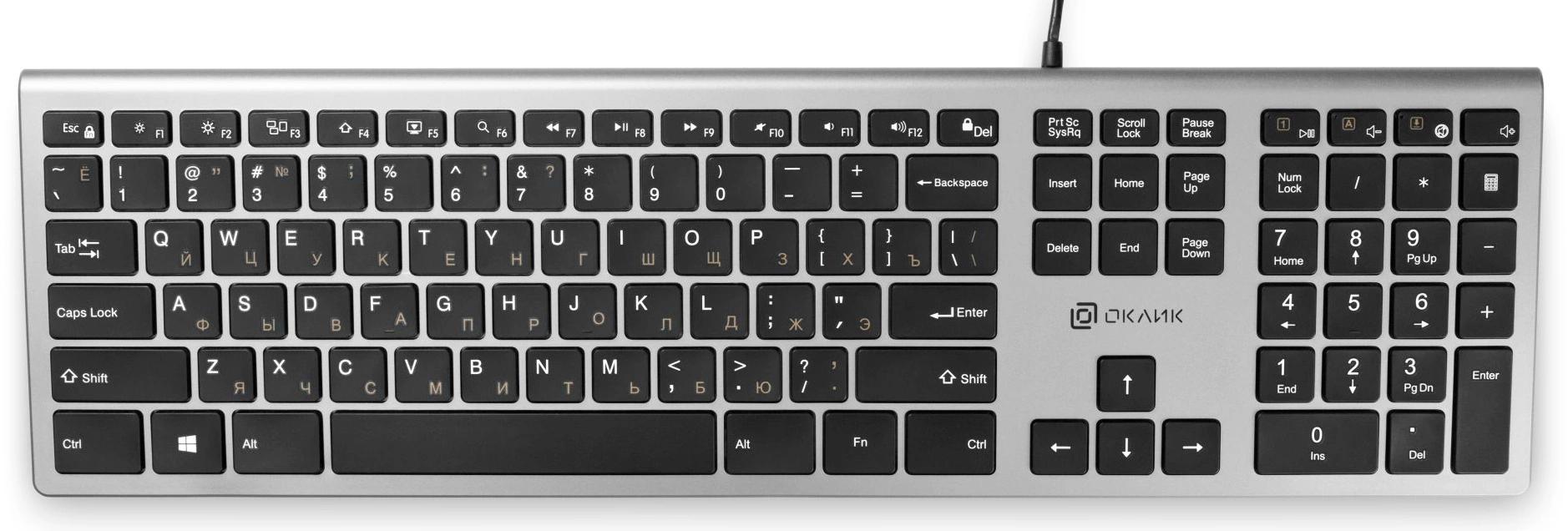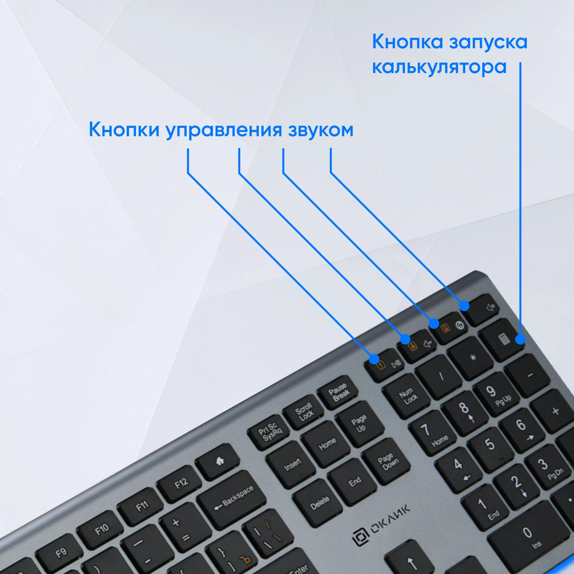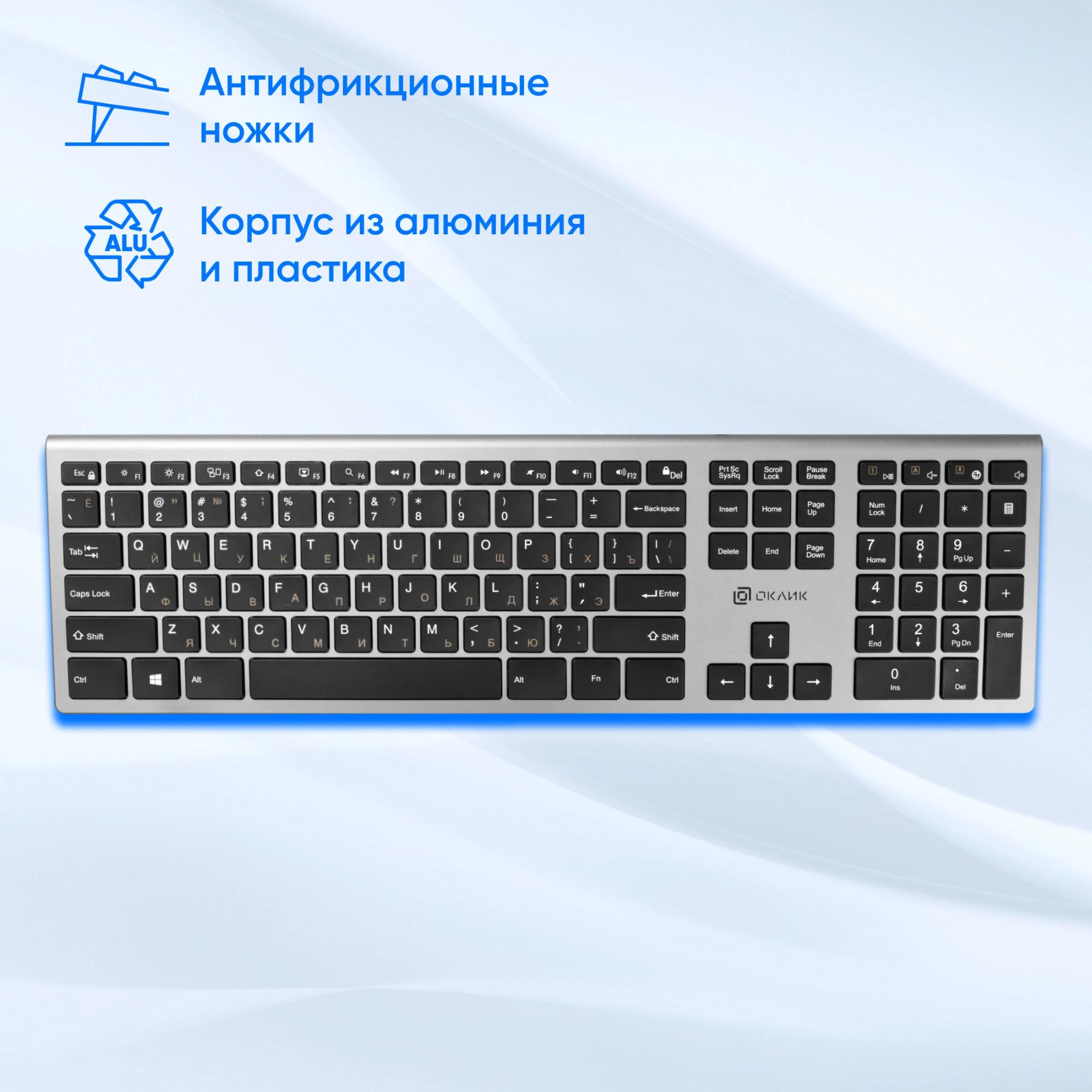 Клавиатура Оклик 890S серый/черный USB slim Multimedia (1784239)