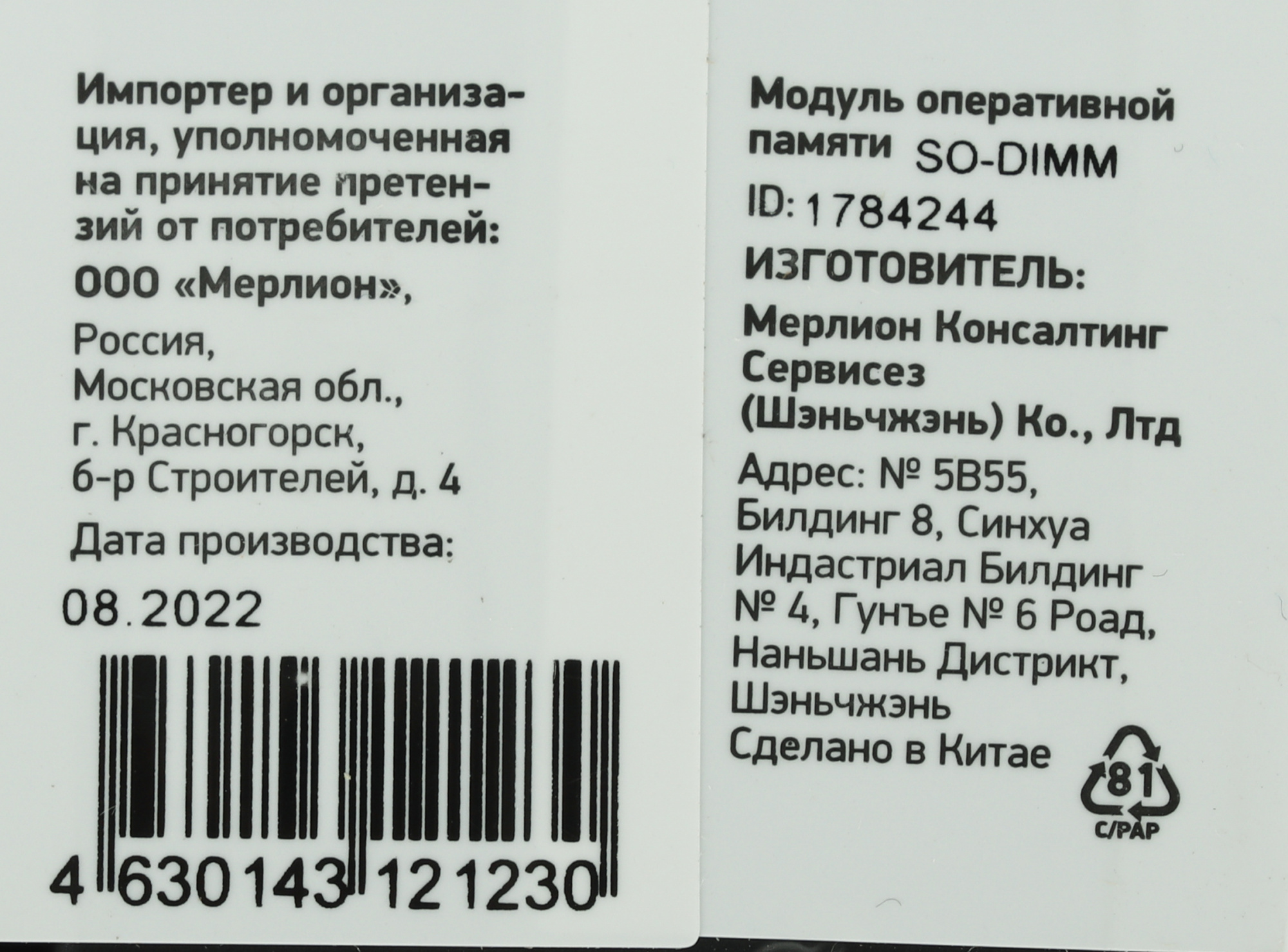 Обозначение памяти