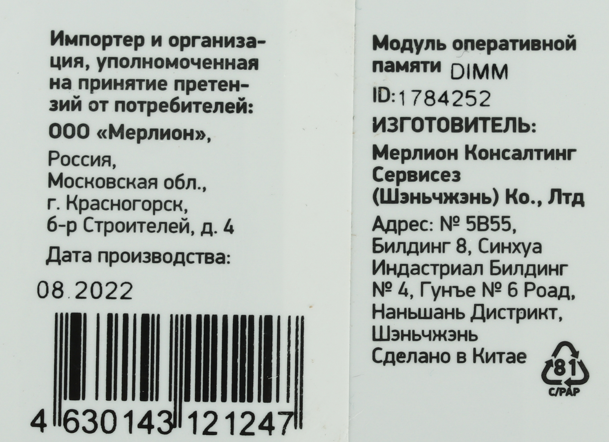 PartNumber / Артикул Производителя
