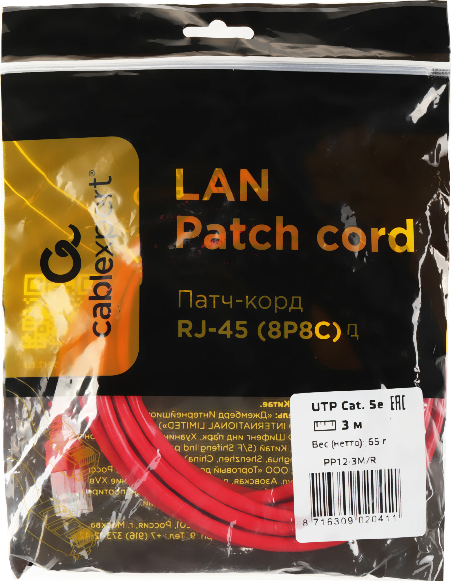Патч-корд Premier PP12-3M/R 1000Гбит/с UTP 4 пары cat5E CCA molded 3м красный RJ-45 (m)-RJ-45 (m)