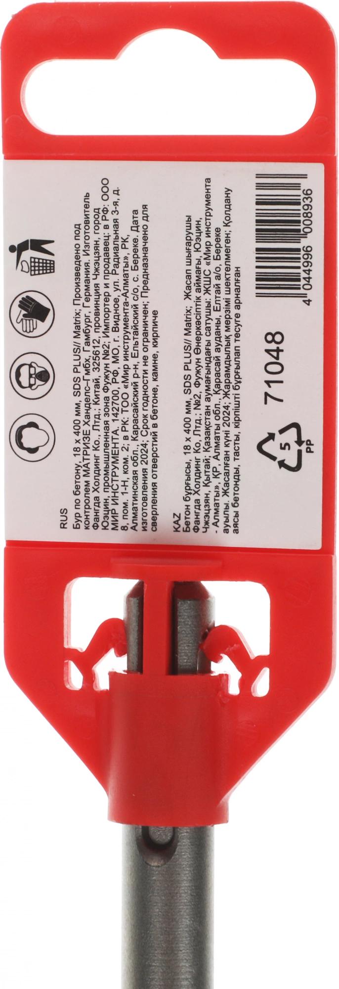 Бур Matrix 71048 по бетону Д=18мм Дл=400мм (1пред.) для перфораторов