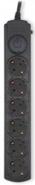 6 евророзеток с заземлением. Входная вилка Schuko. Защита от перегрузки. Защита от импульсов высокого напряжения. Защита от перетирания провода в месте входа в корпус фильтра. Ударопрочный негорючий корпус. Кнопка питания с индикатором сети.