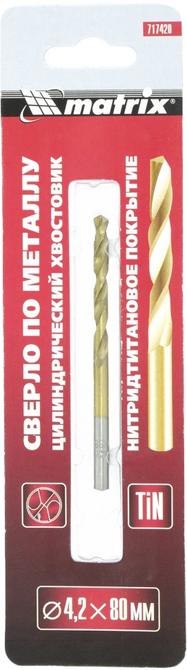 Сверло Matrix 717420 по металлу Д=4.2мм Дл=75мм (1пред.) для дрелей