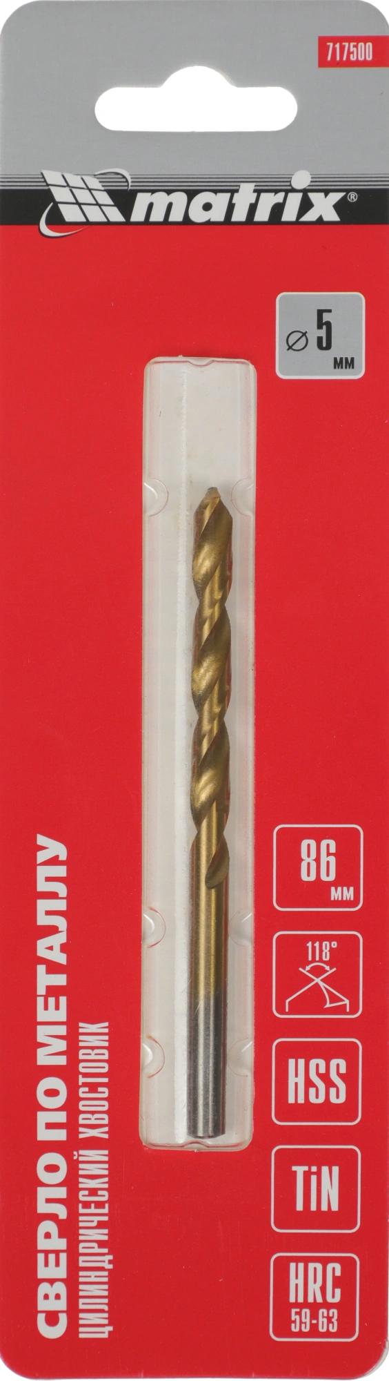 Сверло Matrix 717500 по металлу Д=5мм Дл=86мм (1пред.) для дрелей