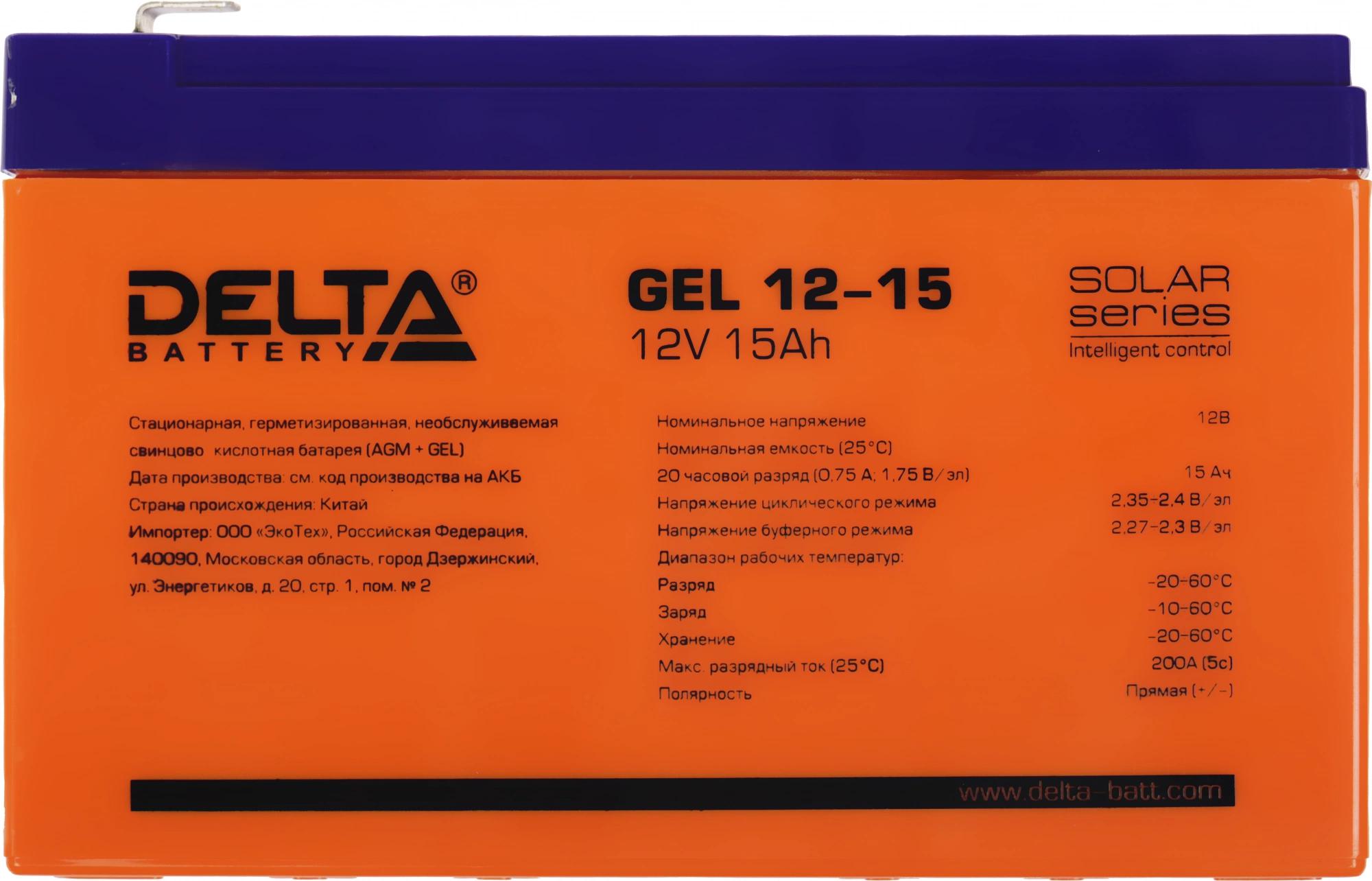 Батарея для ИБП Delta GEL 12-15 12В 15Ач