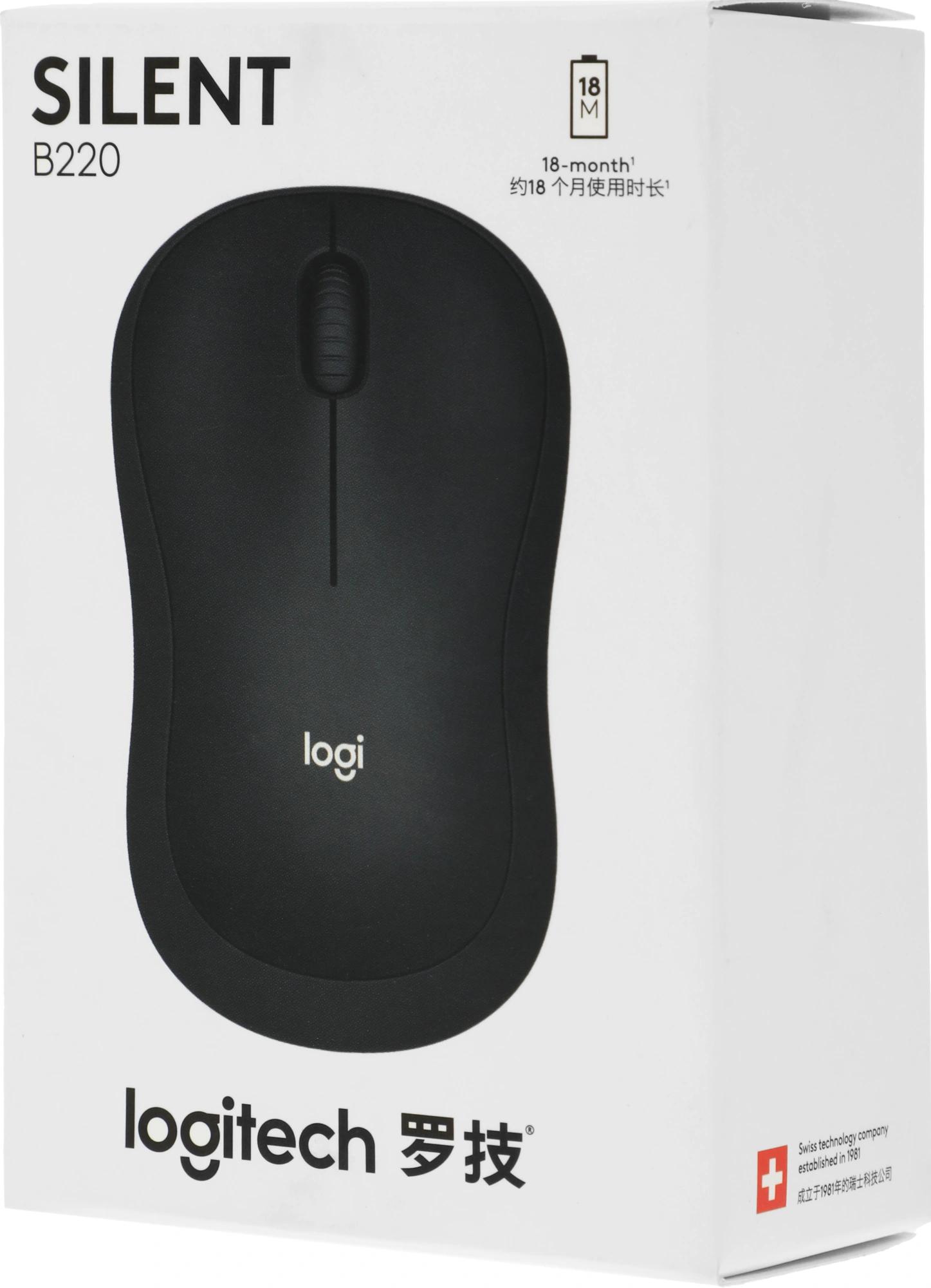 Мышь Logitech B220 Silent черный оптическая 1000dpi silent беспров. USB 2but (910-005553)