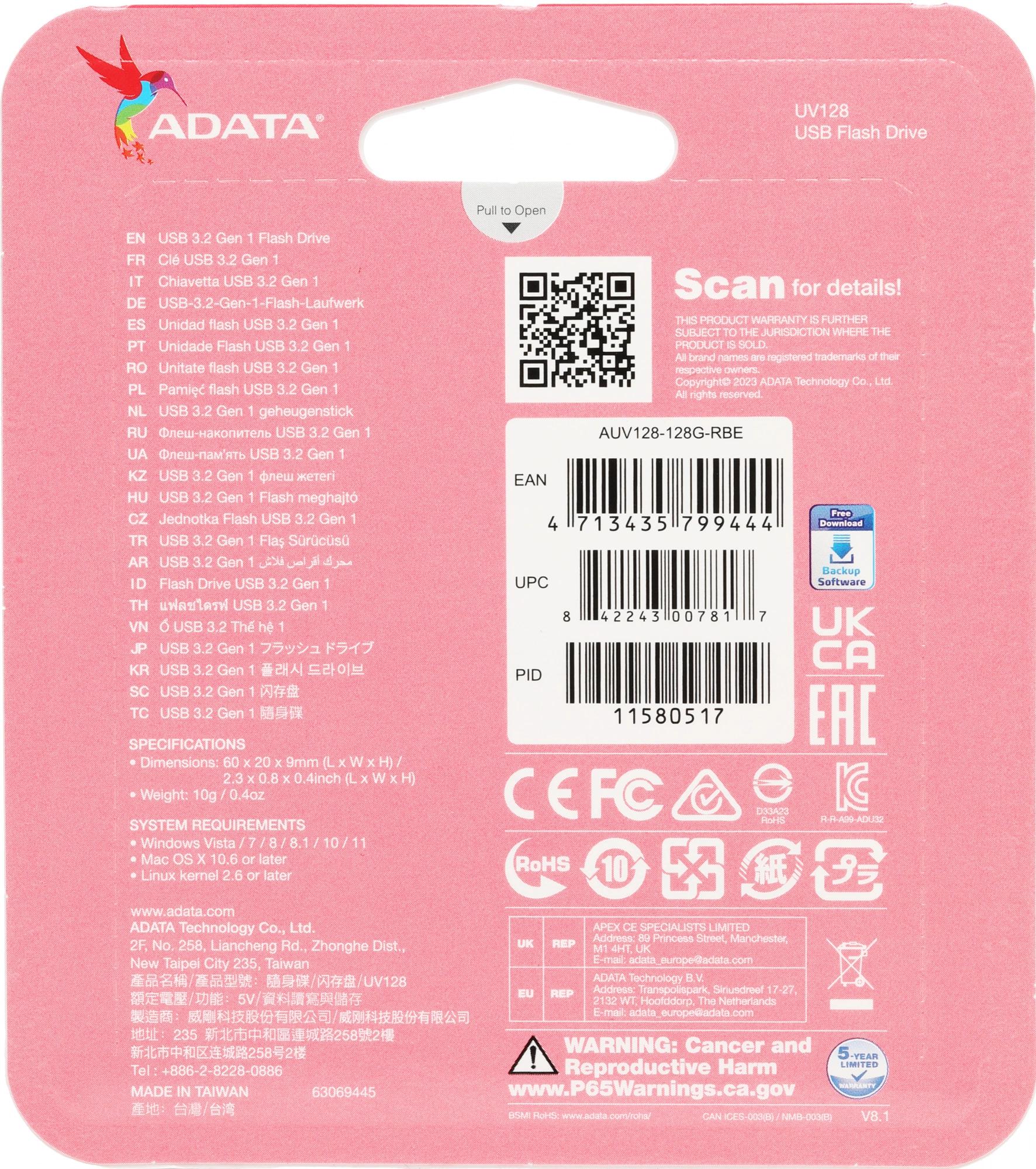 Флеш Диск A-Data 128Gb DashDrive UV128 AUV128-128G-RBE USB3.0 черный/синий